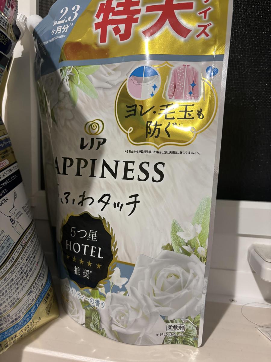 五つ星ホテル推奨と書いてありますが、この柔軟剤は確かに高級感があってとても良かったです。上品で清潔感のあるフローラルな香りの中に、ほんの少しだけ紅茶のような香りがあって、とてもいい香りがしました。香りは決して強すぎず、洗濯が乾くころにはほどよい香りレベルになっていました。仕上がりもふんわりとなりました。この仕上がり、少しお高いホテルのリネンとかでこういう香りがしそうで本当に気に入りました。他の柔軟剤とお値段は変わらないのに、上品で気分が上がったのでリピートしたいです。