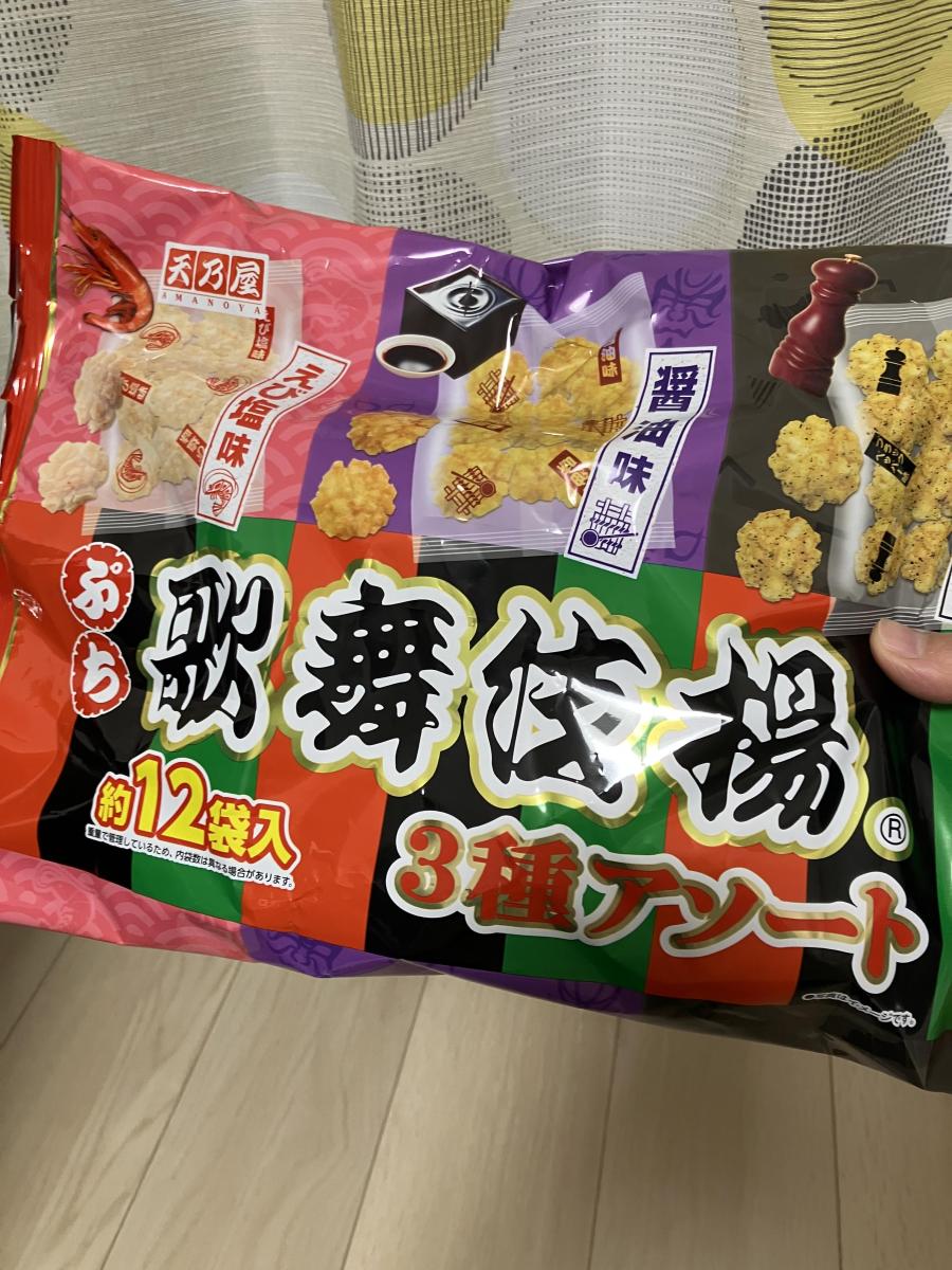 歌舞伎揚のファンで3種類の味が楽しめれると購入しましたが、個人的には普通の味の歌舞伎揚の方が好きです。醤油味は少し醤油が濃いく、エビせんは、あっさりとしていて食べやすかったです。ペッパーはおつまみに良いかと。