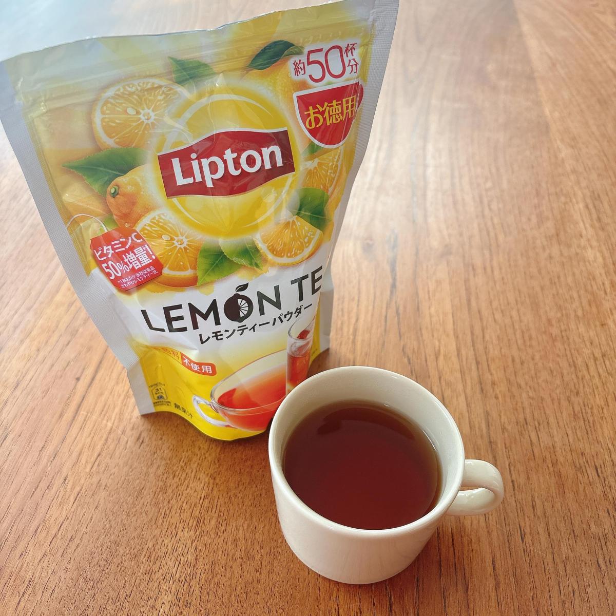 こちらはリプトンさんのレモンティーがつくれるパウダーです。