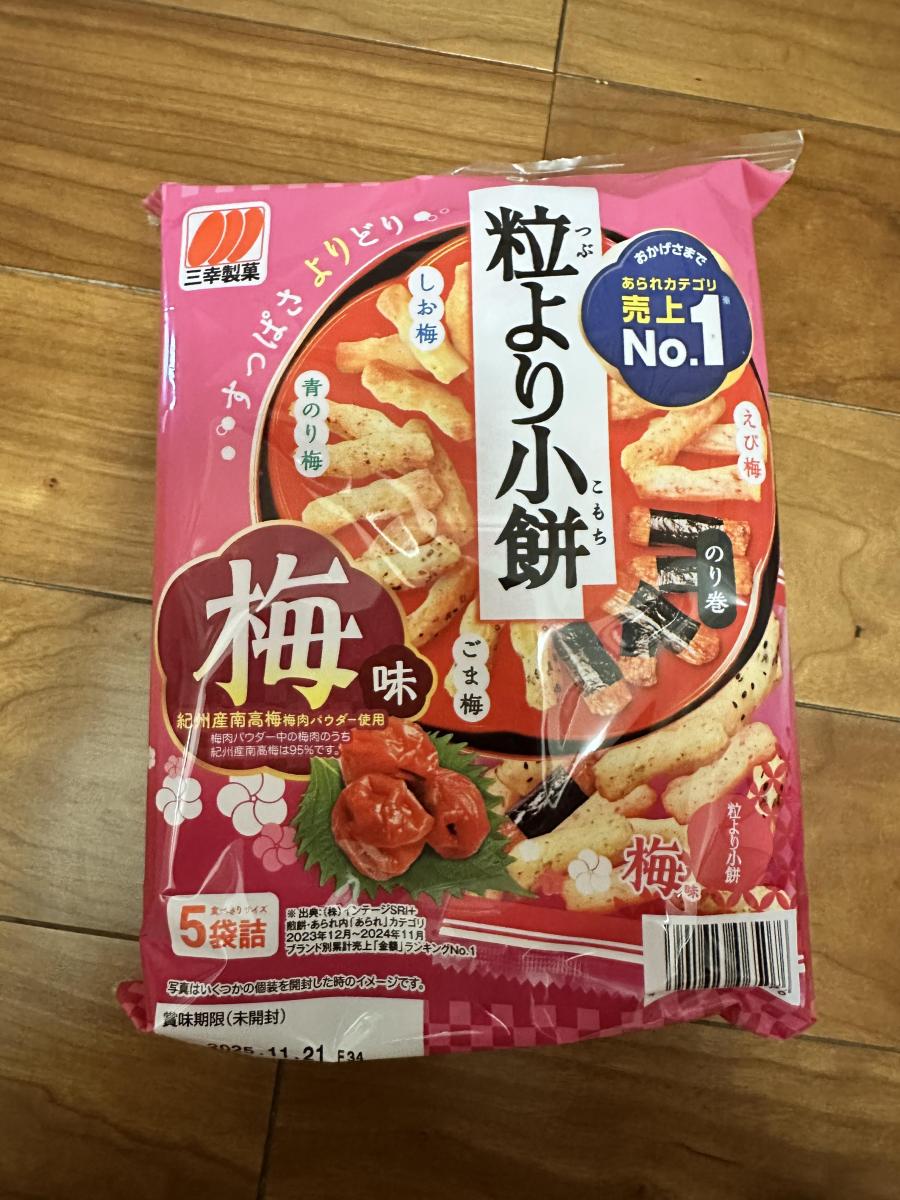 梅の味もしっかり付いていますし、塩気も強すぎず、1袋に色んな味が入っているので、最後まで飽きずに食べられました。