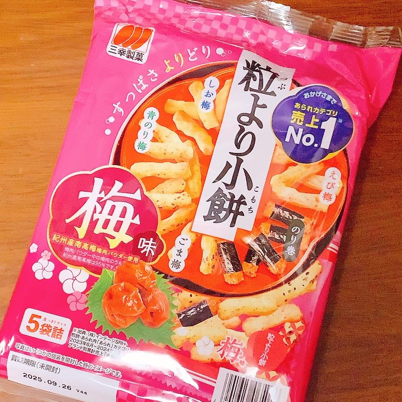 小さくてさまざまなバリエーションが美味しい粒より小餅の梅味バージョンです。ほどよい酸っぱさがある爽やかな梅の味がアクセントになっていて暑い季節にぴったりです。