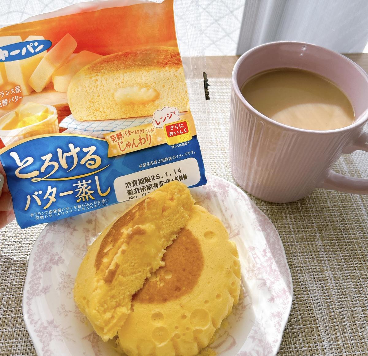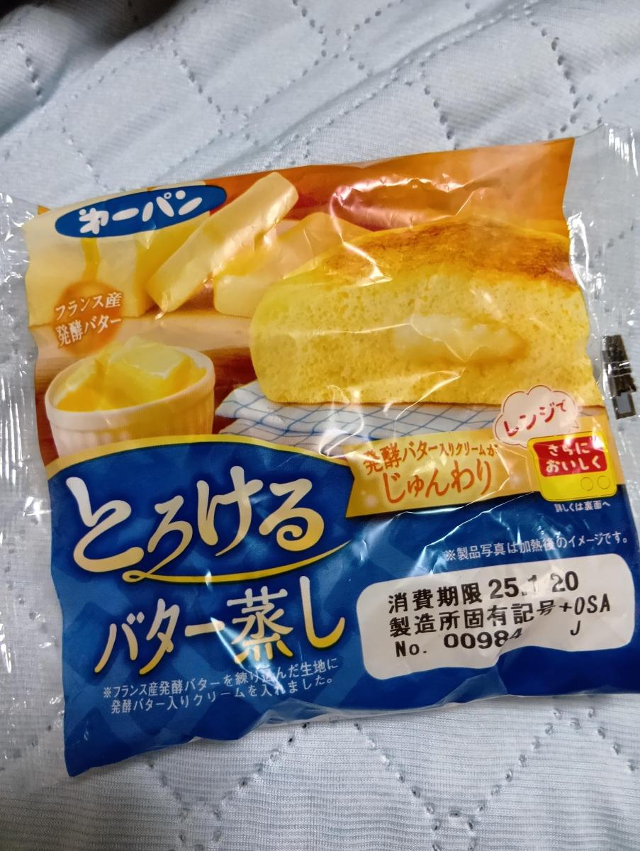 とろけるバター蒸しのネーミングに惹かれてどんな味か試したく購入してみました。リベイクしました。生地はしっとりふんわりとやわらかく、やわらかな弾力があり、やさしい口あたりが大変いい食感です。重たすぎないコクと感とまろやかさをおぼえるバターの風味で、ミルクのようなまろやかな風味がほどよく混ざり合って大変美味しい味わいです。コスパもいいのでまた購入してみたいなと思いました。