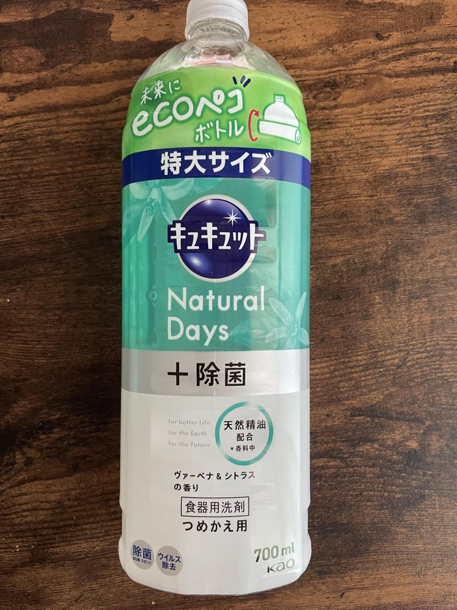 店頭に並んでいたキュキュットの中で一番パッケージデザインがおしゃれに感じたので買ってみました。泡立ちも油汚れ落ちも良くて、キュキュットらしい使い心地でした。このNatural Daysとふつうのキュキュットの違いはよく分かりませんでしたが、香り付きタイプもあるようなのでそちらも使ってみたいです。