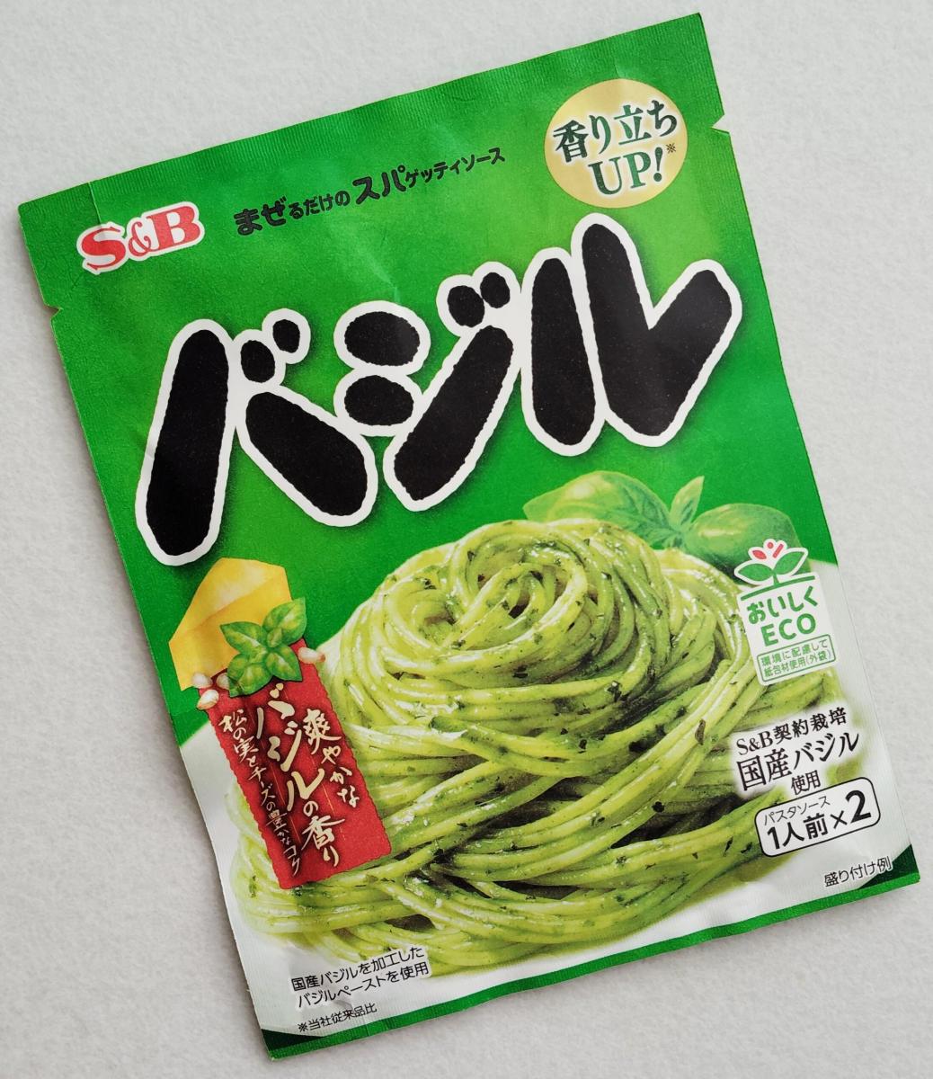 エスビーのまぜるだけのスパゲッティソースのバジル味は一袋に2つ入っているので少量食べたい時に便利です。オイルとバジルのソースという感じなのでパスタに絡める以外の使い方もできそうです。バジルの香りがしっかり感じられてコスパが良いのでお気に入りです。