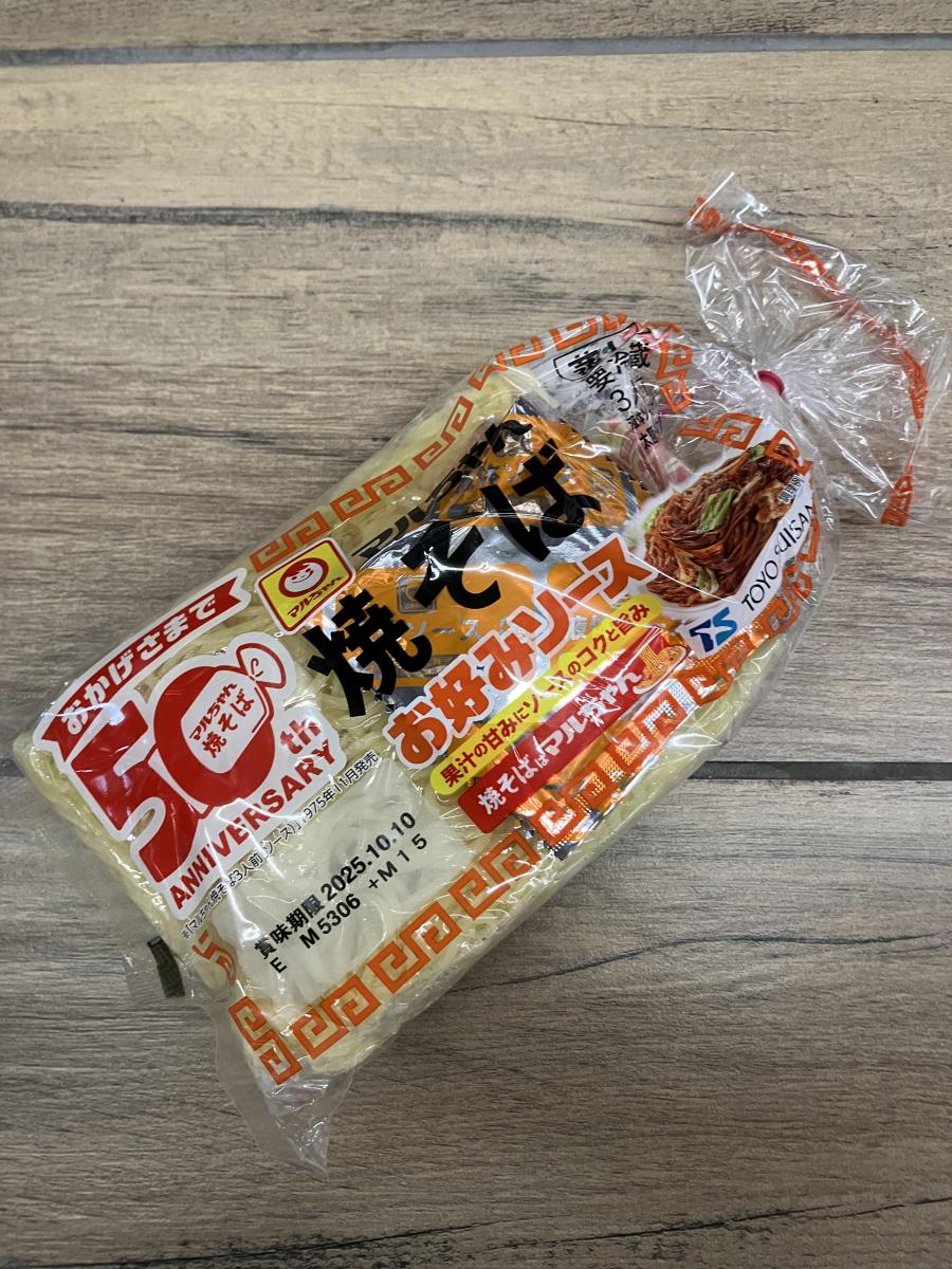 もちもちした食感が心地よいマルちゃんのチルド焼そばです。普段はスタンダードなタイプを買いますが、このお好みソース味は甘みとコクが強く、違った味わいがあります。