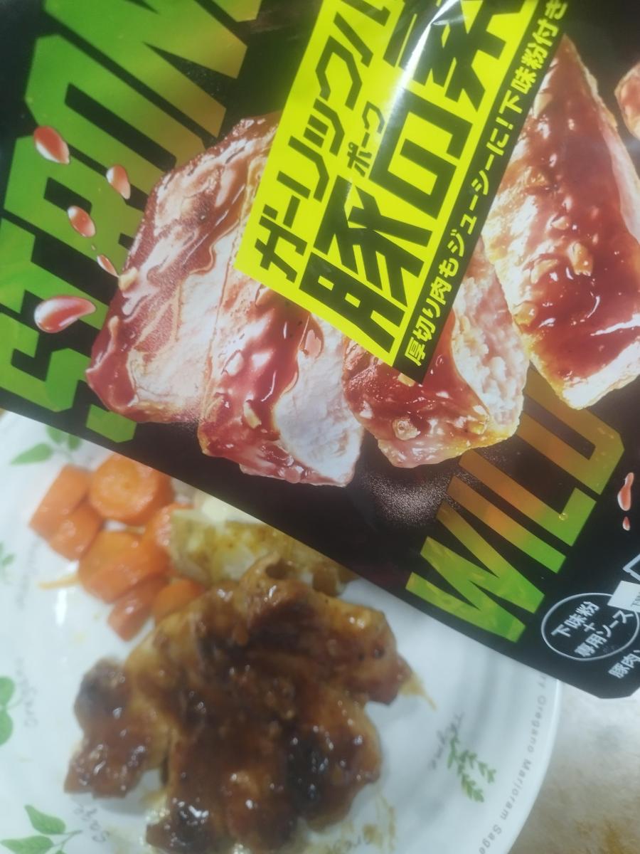 肉にまぶす下味粉と専用ソースのセットです。STRONG&WILDと黒いパッケージが魅力的で購入しました。イメージとても硬派な辛いガツンとした味かなと想像しましたが、予想は外れて、確かにガーリックとコショウもきいたガツン系ですがそれに加えてバターの風味がとてもマイルドにからまりなんとも言えない美味しさです。ポークソテーはよく固くなってしまいがちですが下味粉をまぶすおかげで柔らかい仕上がりです。仕上げにかけるソースがジュージューと照りよく肉に絡みます。