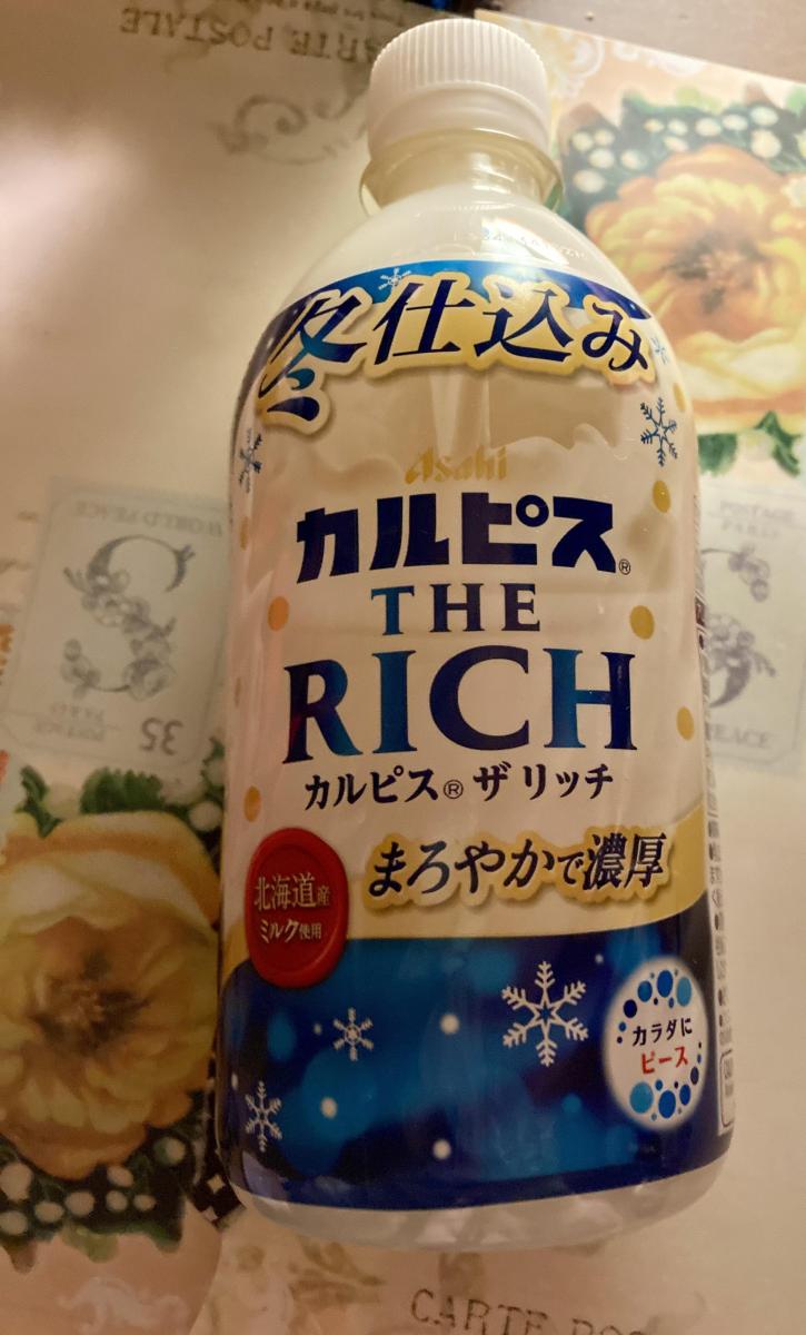 カルピス®THE RICHのネーミングに惹かれてどんな味か試したく購入してみました。カルピスウォーターよりも、甘くて濃厚な味わいです。焦がし砂糖を使用しており、さらに北海道産乳原料を、使っているので、とても上質でリッチな気分になります。 甘さが強いですが、くどくなく、以外にスッキリと飲みやすかったです。