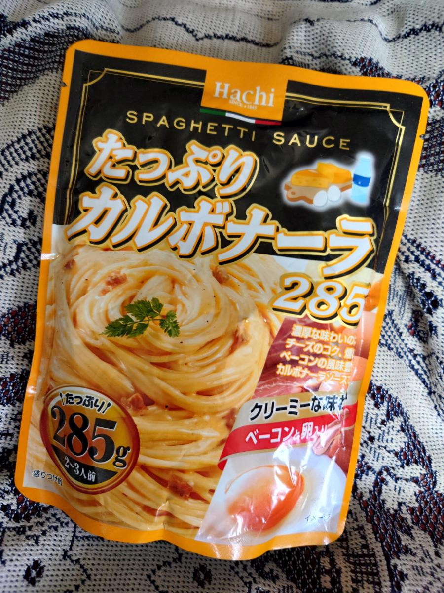 このたっぷりパスタシリーズの中でも特に大容量の285g。2〜3人分なので、家族と一緒の食事の時に最適です。クリーミー感があって、こしょうが控えめで優しい味なので、子供もよく食べていました。