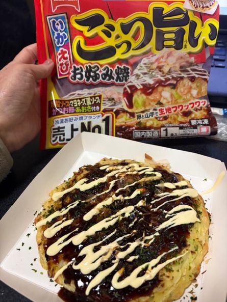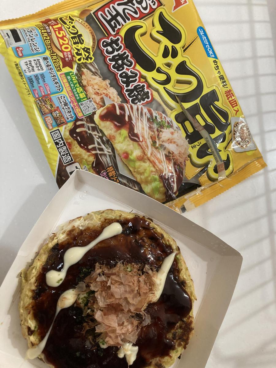 めっちゃ美味しい冷凍食品です。紙トレーのままレンチンしたら出来上がり〜。ソース、マヨ、削り節、青のりまでついてていたれりつくせり。お箸だけ用意したら美味しいお好み焼きが食べられます。コスパもよくて最幸です(^-^)