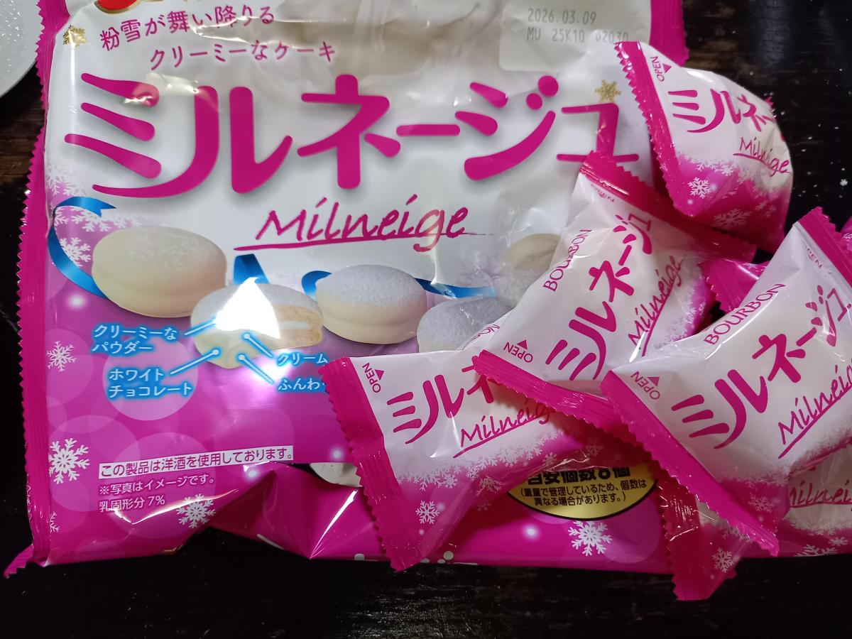 ブルボンのミルネージュを食べると、しっとりとした食感と優しい甘さが絶妙にマッチしていて癒されます。