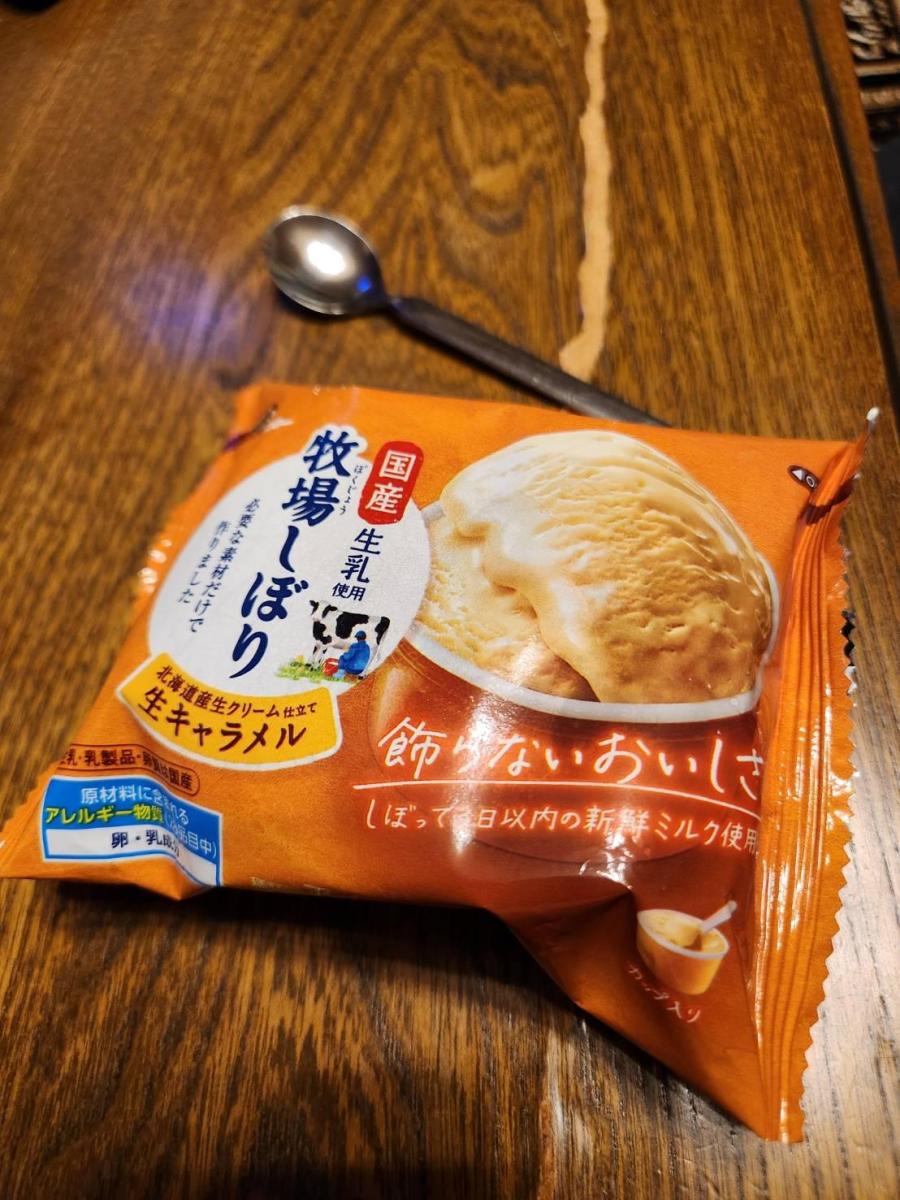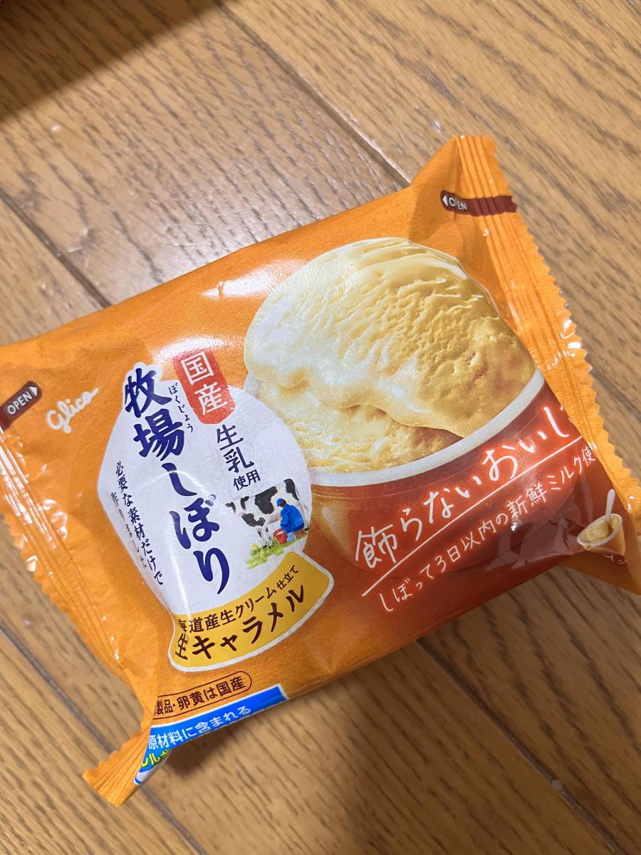 牧場しぼりは、アイスクリームのミルクの味が濃くて美味しいです。こちらはキャラメルが濃厚で、しっかり甘いです。甘さに癒されたい時にピッタリ。量はそんなに多くないのですが満足感があります。