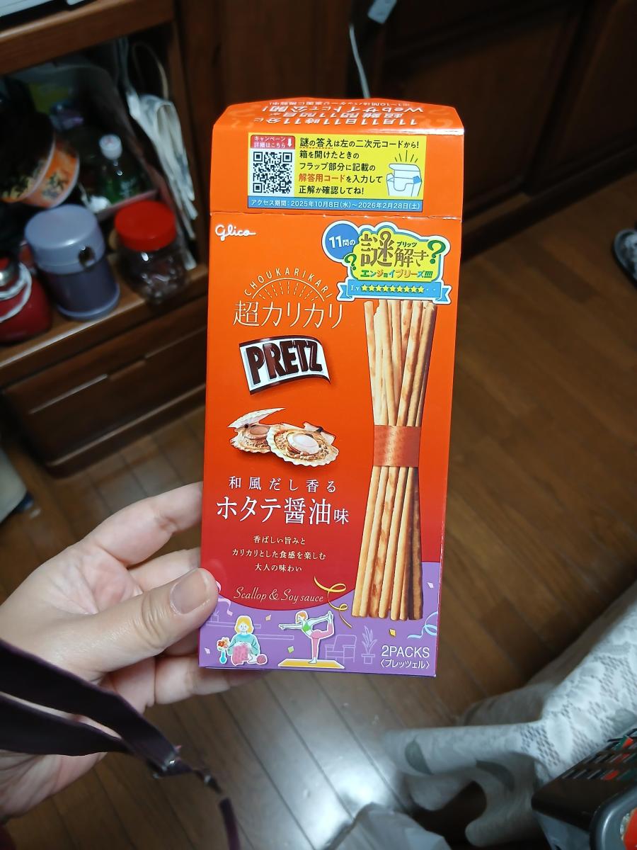 普通のプリッツよりもカリカリな食感で、とてもおいしいです。ホタテ醤油の旨味がしっかりと感じられて、おやつにもおつまみにも適していると思います。