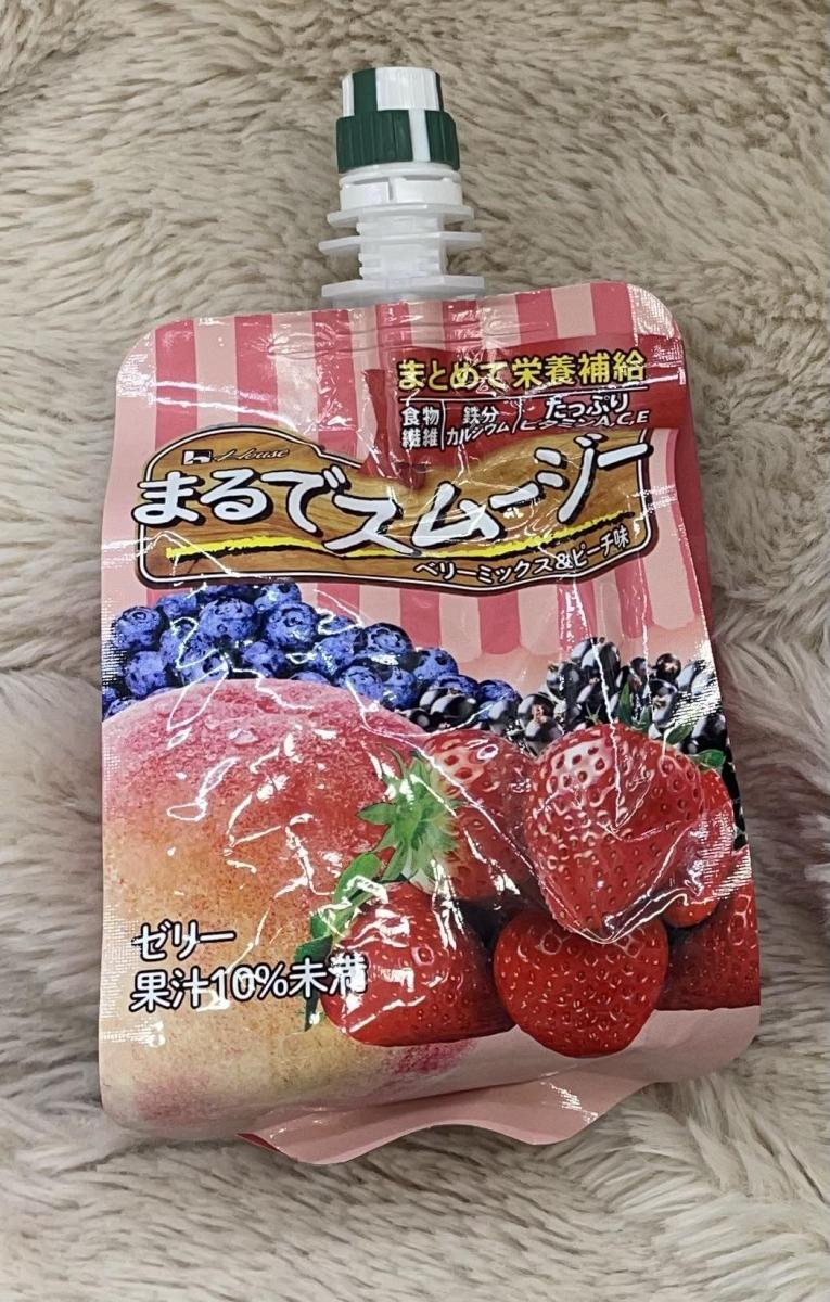 ゼリー飲料なのにスムージー?ときになり購入しました。飲んでみると不思議。ほんとにゼリーとスムージーの間?という感じで新鮮でよかったです。スッキリとしたベリー感と、ももの味もよくきいていて美味しいです!これで栄養も取れるなんていい商品だなと思いました。このスムージーもリピしたいですし、バナナ味もあるとのことなので、そちらもぜひまた購入してみたいです。