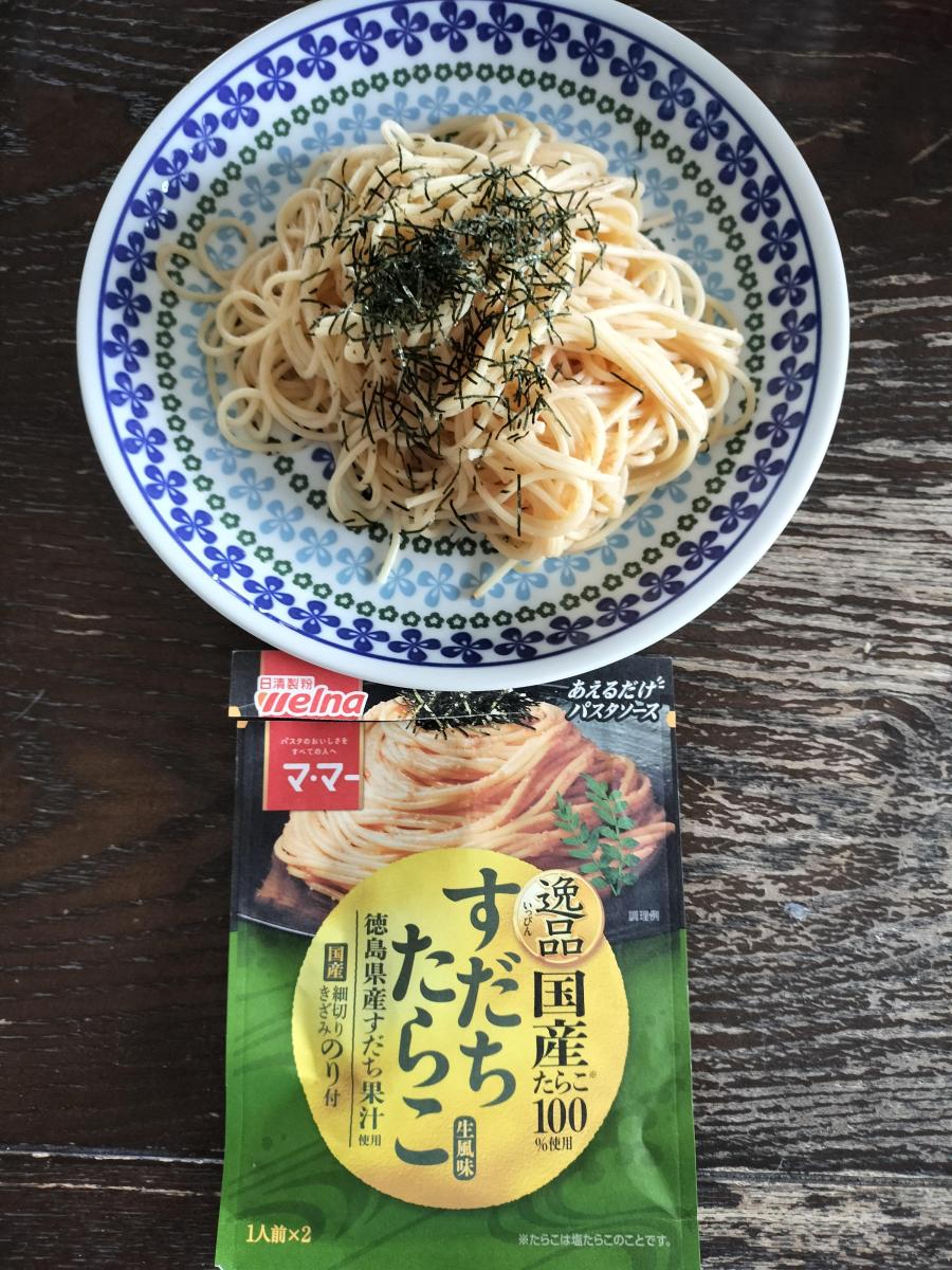 混ぜるタイプのパスタソース。安かったので購入。たらこだけの味はよくあるがすだちも入っていてどこか本格的な味わいに感じて満足度は高い。2食入りなのでお得感もあり。