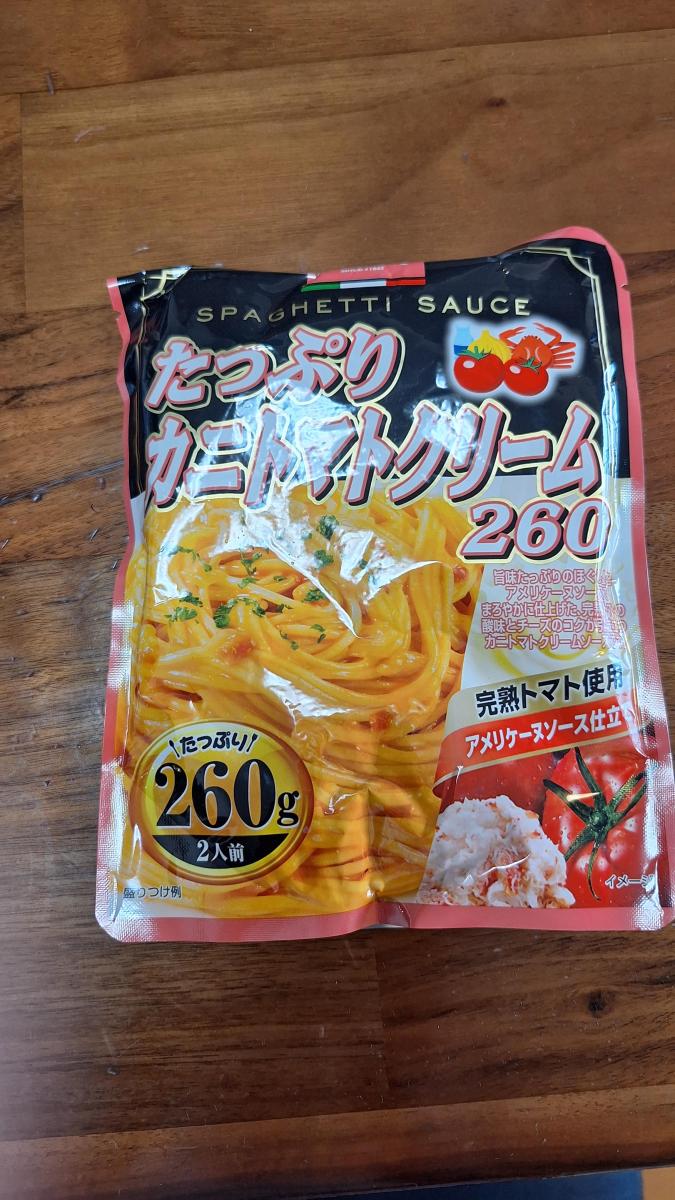 お店でパスタを食べる時、カニトマトクリームが好きな味なので、見つけて即購入しました。カニのほぐし身の量は少ないですが、風味はしっかり感じられます。ソースは量が多いので、パスタにしっかり絡んで、トマトの酸味、乳製品のクリーミーさがおいしかったです。