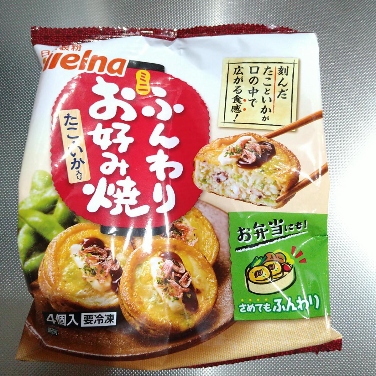 お好み焼きは、たこ焼きを半分に切ったような形をしています。上にはソースとマヨネーズがトッピングされています。レンチンするとソースがいい感じにとろっとします。