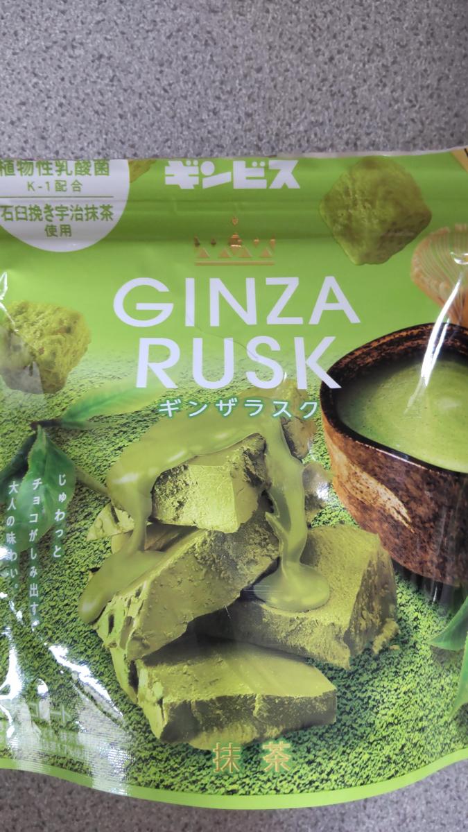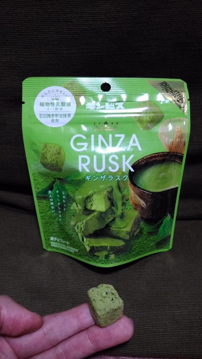キューブ型の1口サイズのラスクに抹茶チョコが染み込んでいます。