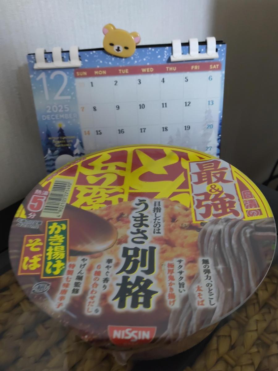 まずスープがすごくコクがあり少々塩分高めかなとも思いましたがどこか落ち着くような出汁がよく効いたおいしい醤油のスープでした。麺はのどごしがよく弾力がありツルッとした食感で、硬めのしっかりした乾麺のおそばに似たような感じがしました。かき揚げは5分待ってすぐ入れるタイプで、分厚いので最初はサクサクが楽しめ出汁に浸ってくると染み込んでまた違う美味しさを味わえました。スープも麺もかき揚げもそれぞれクオリティが高く、インスタントのカップ麺を忘れさせるおいしさでした。