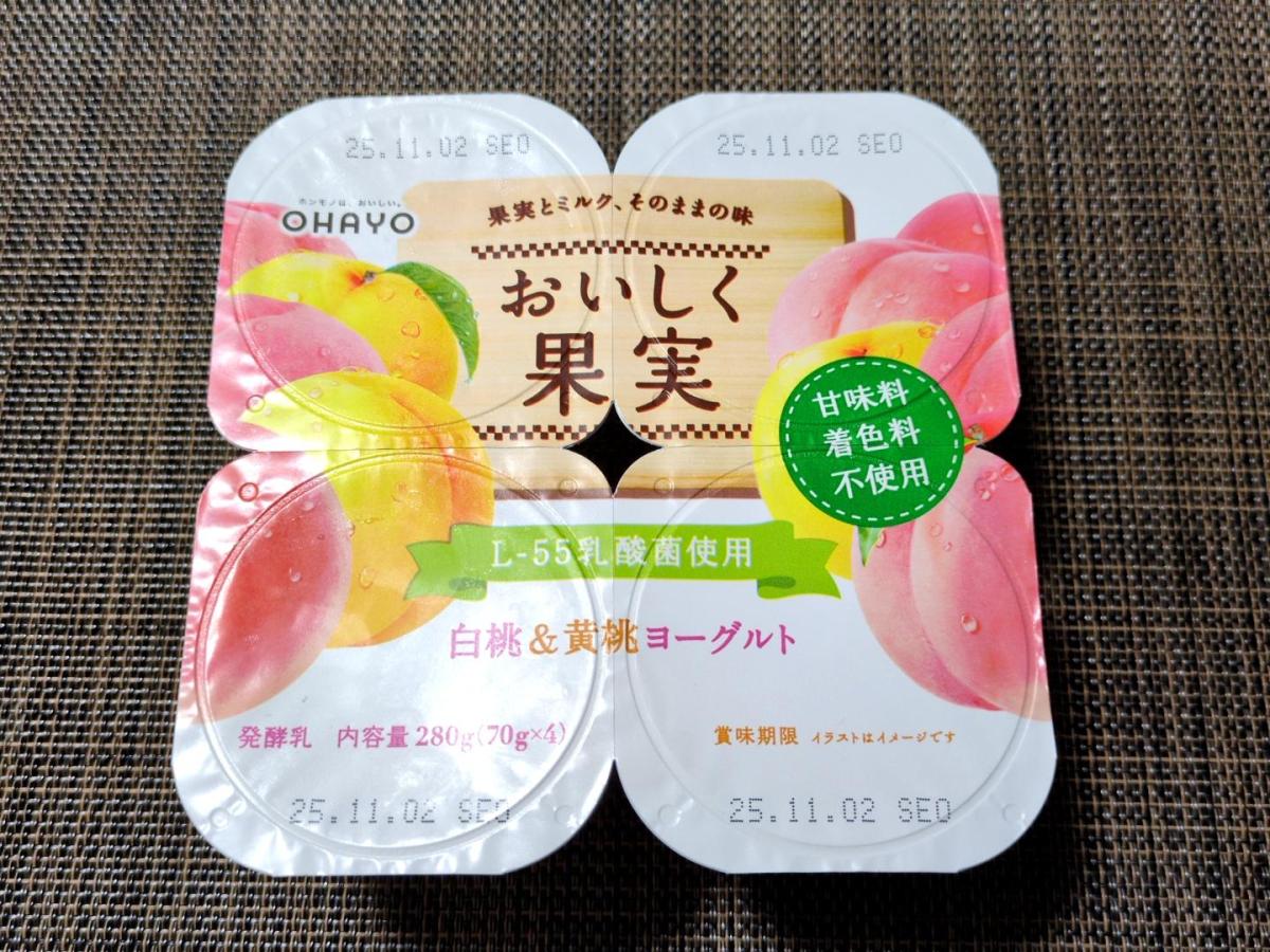 個人的には白桃と黄桃が堅いので柔らかい方が滑らかなのヨーグルトに合うと思いました。