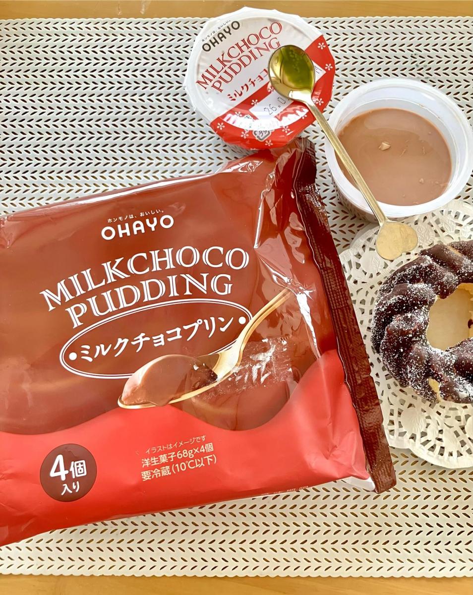 オハヨーのミルクチョコプリンです。濃厚なチョコレート色をしたプリンです。1口食べるとチョコレートの濃厚な味わいが口に広がってチョコレートが甘すぎず苦すぎないのでとっても食べやすかったです。プリンはとろーりなめらかな舌触りで感動しました。1つは小さめですが4つ入りなのと濃厚なので1つで満足感はあります。子どもから大人まで好きな味わいだと思いました。