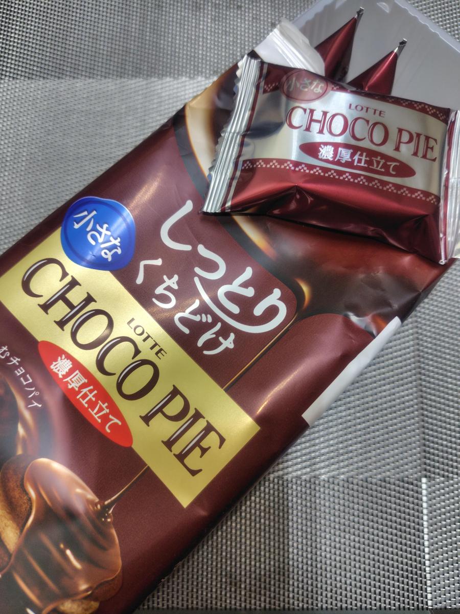 濃厚仕立てとあるように、チョコパイの生地やクリームがチョコレートを含んでいるため、濃厚なチョコを楽しむことができます。小さいながらもチョコレートをふんだんに使用しているため濃厚な味わいで満足度が高いですね。ミルクコーヒーやストレートティなどに合わせていただいています。小さい分カロリーが控えめなのも私にとっては好印象です。