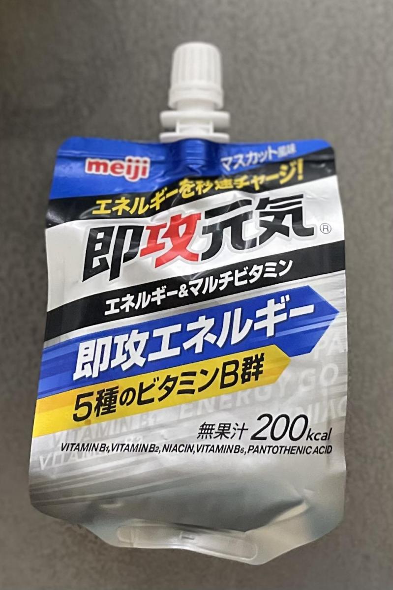 少しお腹が空いたなと思った時に、ご飯を食べるほどではないけれど、少し何か欲しいなという時に購入しました。こちらの商品はゼリータイプで飲みやすく、短時間で飲めるので忙しい時のエネルギーチャージにピッタリです。エネルギーだけでなく、5種のビタミンB群やクエン酸も同時に取ることができるので、嬉しいなと思います。味もマスカット味なので、さっぱりとした飲み心地です。この即攻元気は他のフレーバーもいろいろあるので、購入したいと思います。