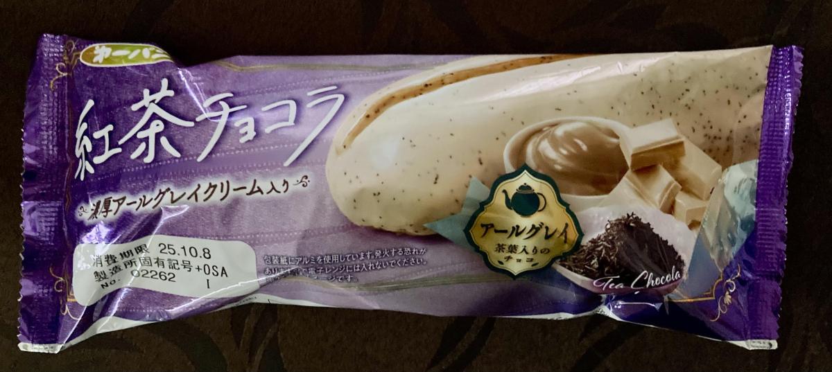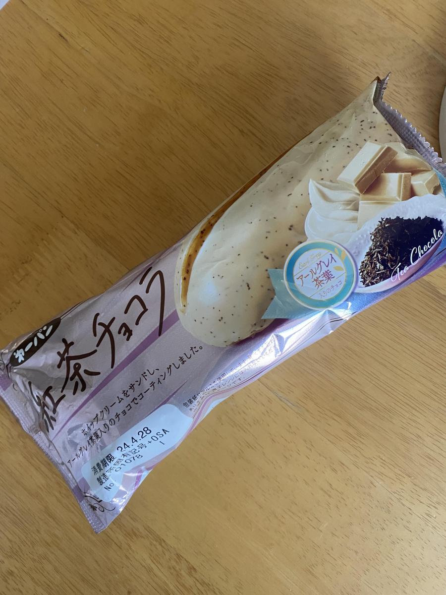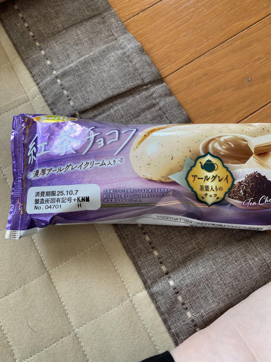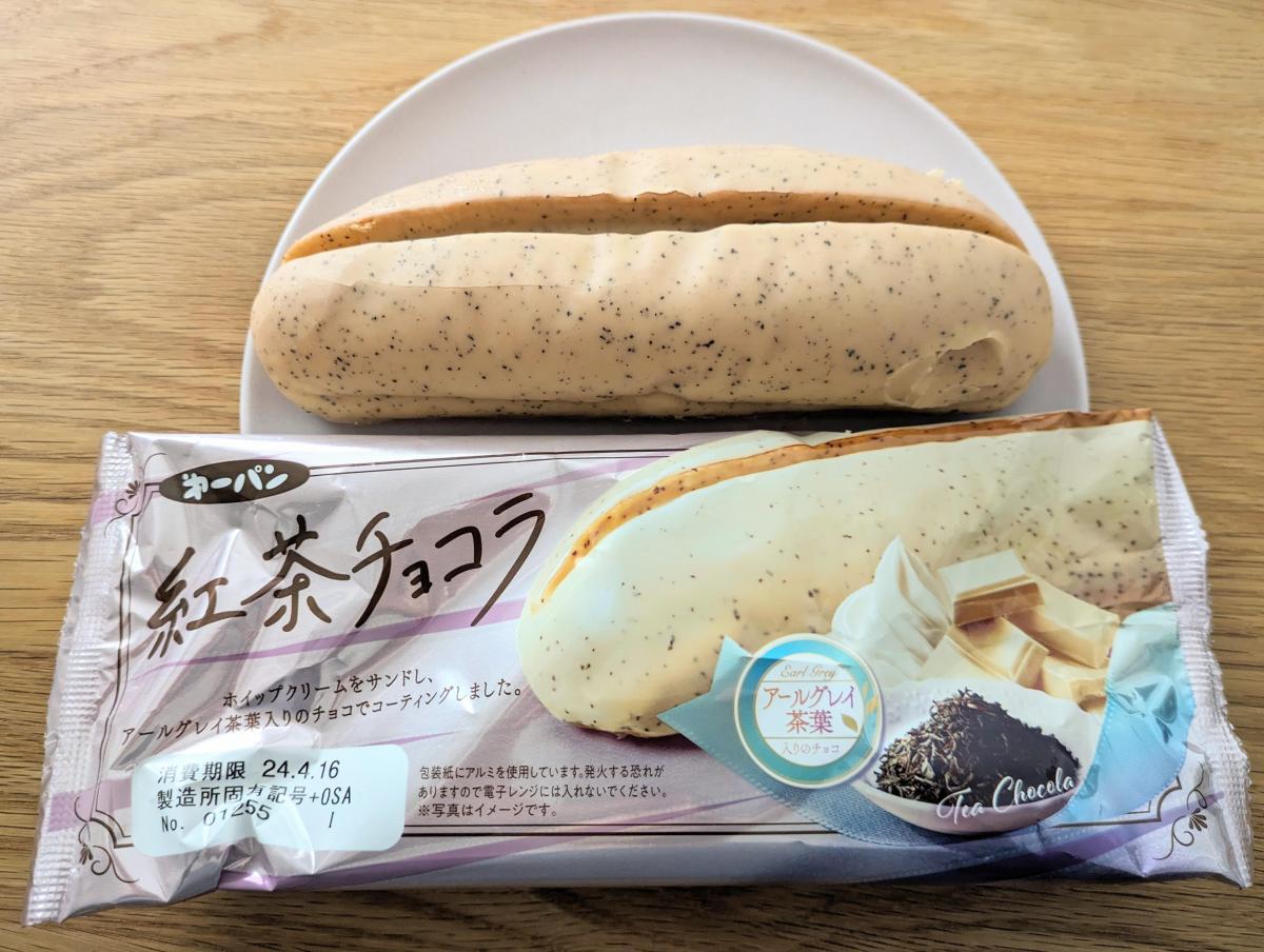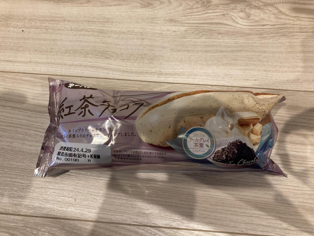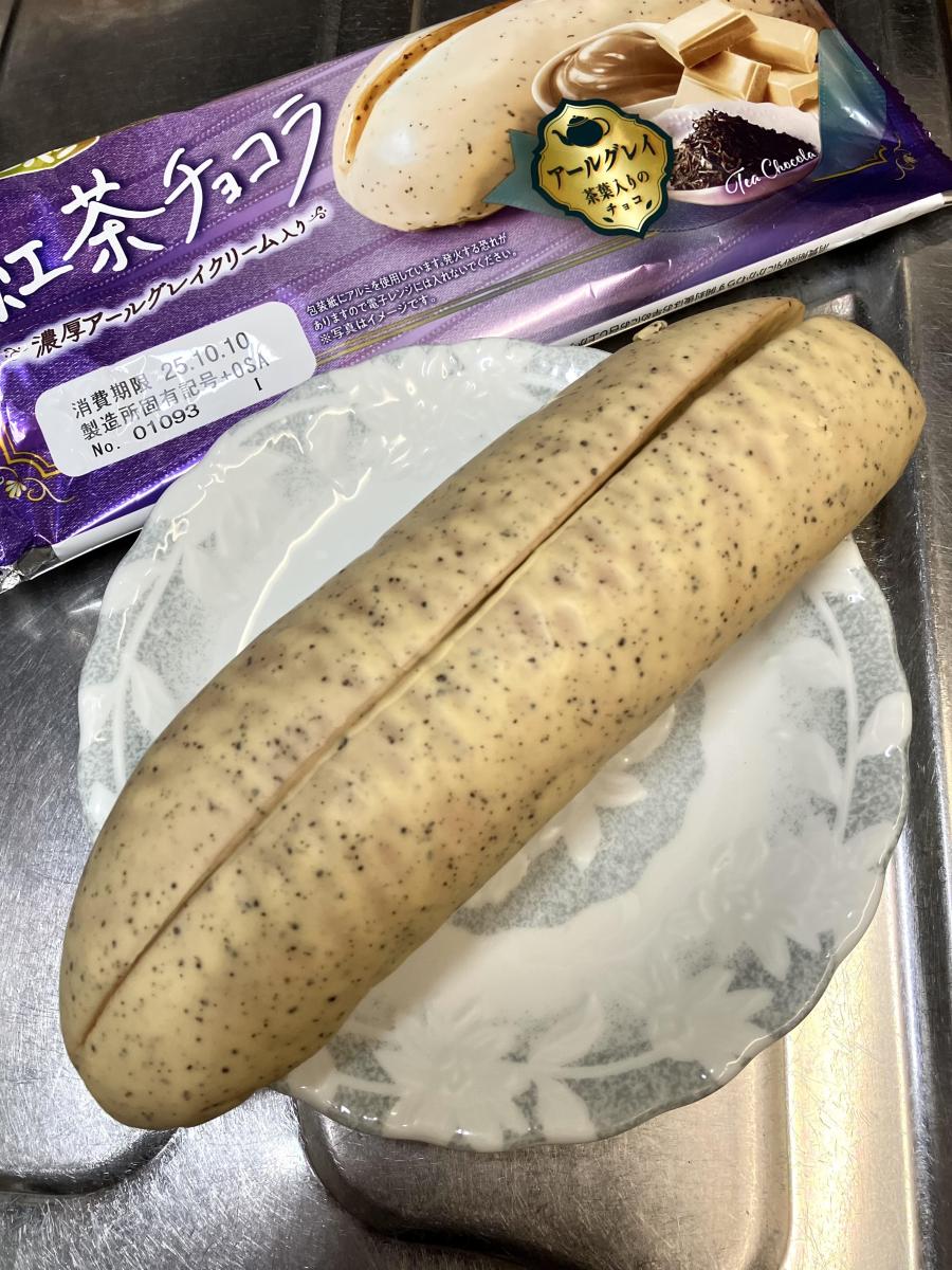 冷蔵庫で冷やしてから食べました。チョコはコーティングのみだと思っていたら、クリームの両脇にもガリっと厚めのチョコが入っていて美味しかったです。パンは冷やしたからか少しパサついていましたが、クリームの油脂感でそこまで気にならなかったです。紅茶の香りが良く、チョコもたっぷり楽しめる個性的なパンだと思います。
