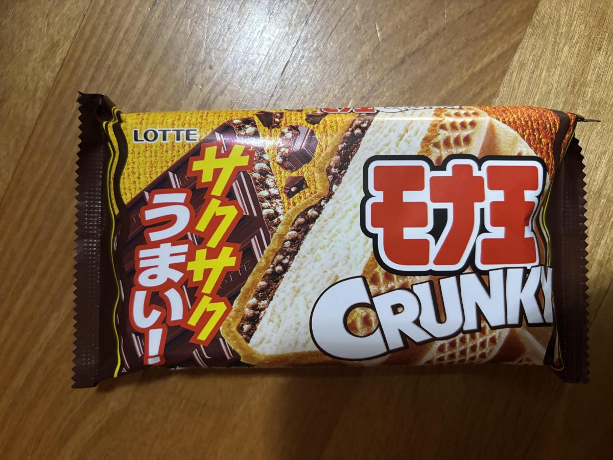モナ王の定番の美味しさと、クランキーチョコのサクサクチョコ感が合わさって美味しかったです。クランキーチョコのサクサク感が残っていて、バニラとモナカとのバランも良いです。