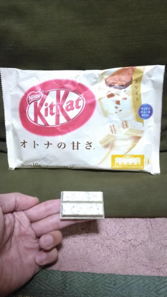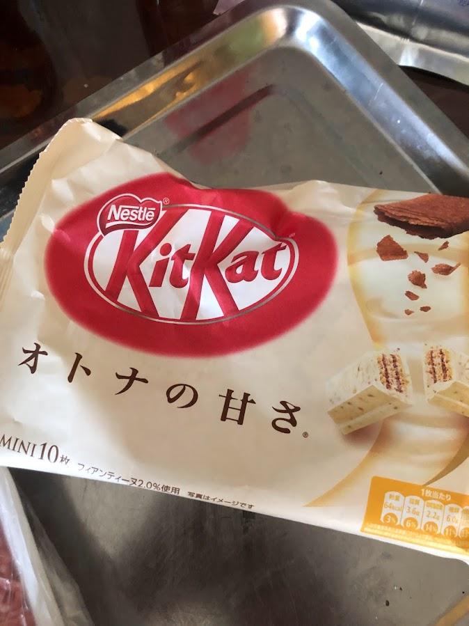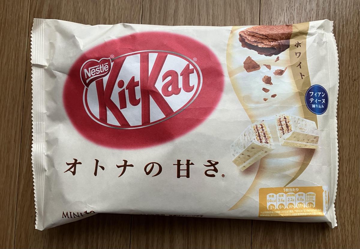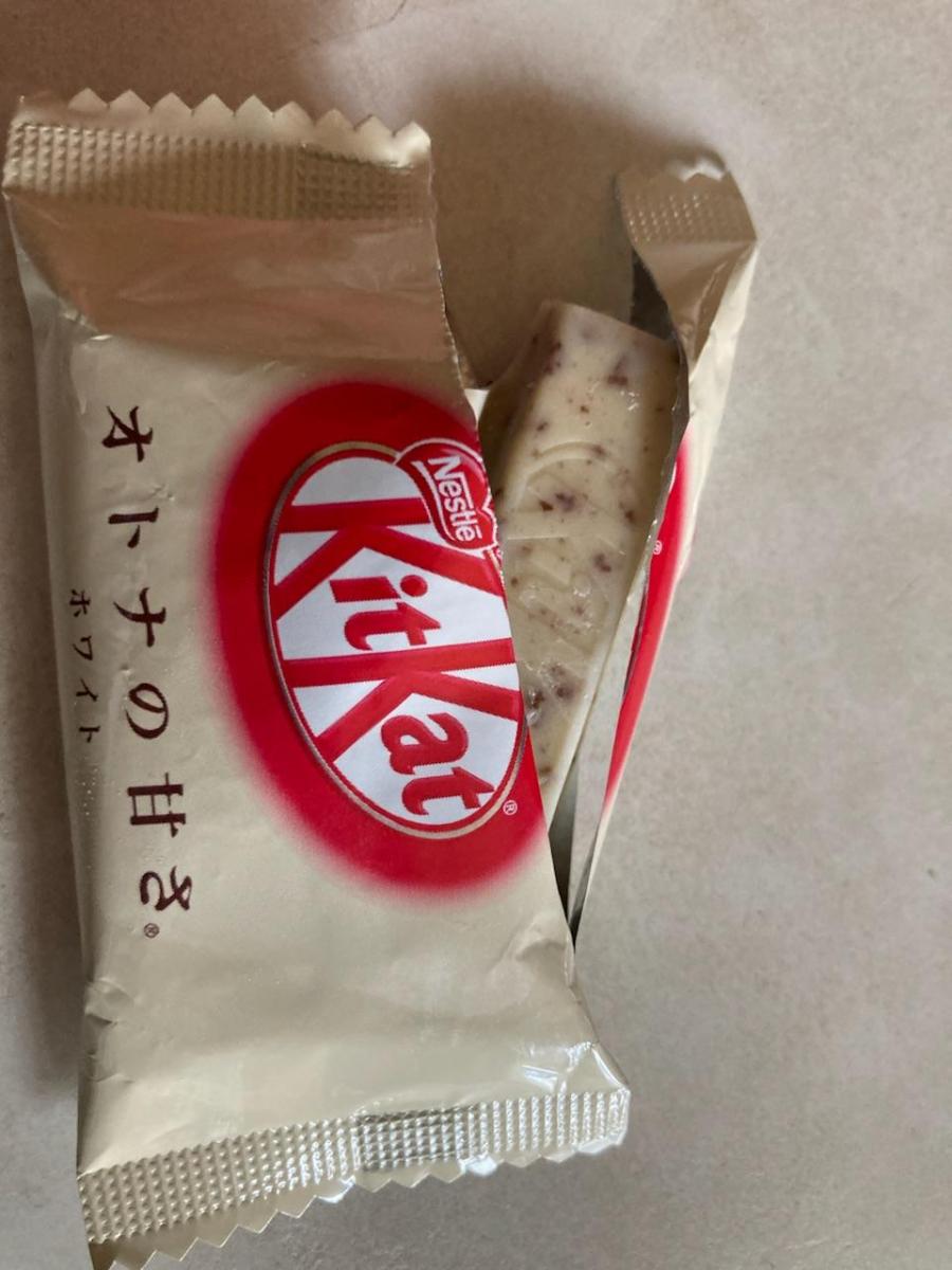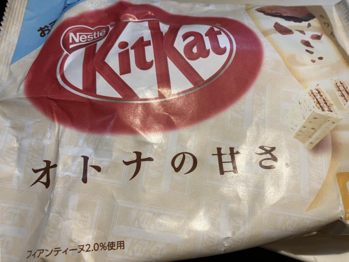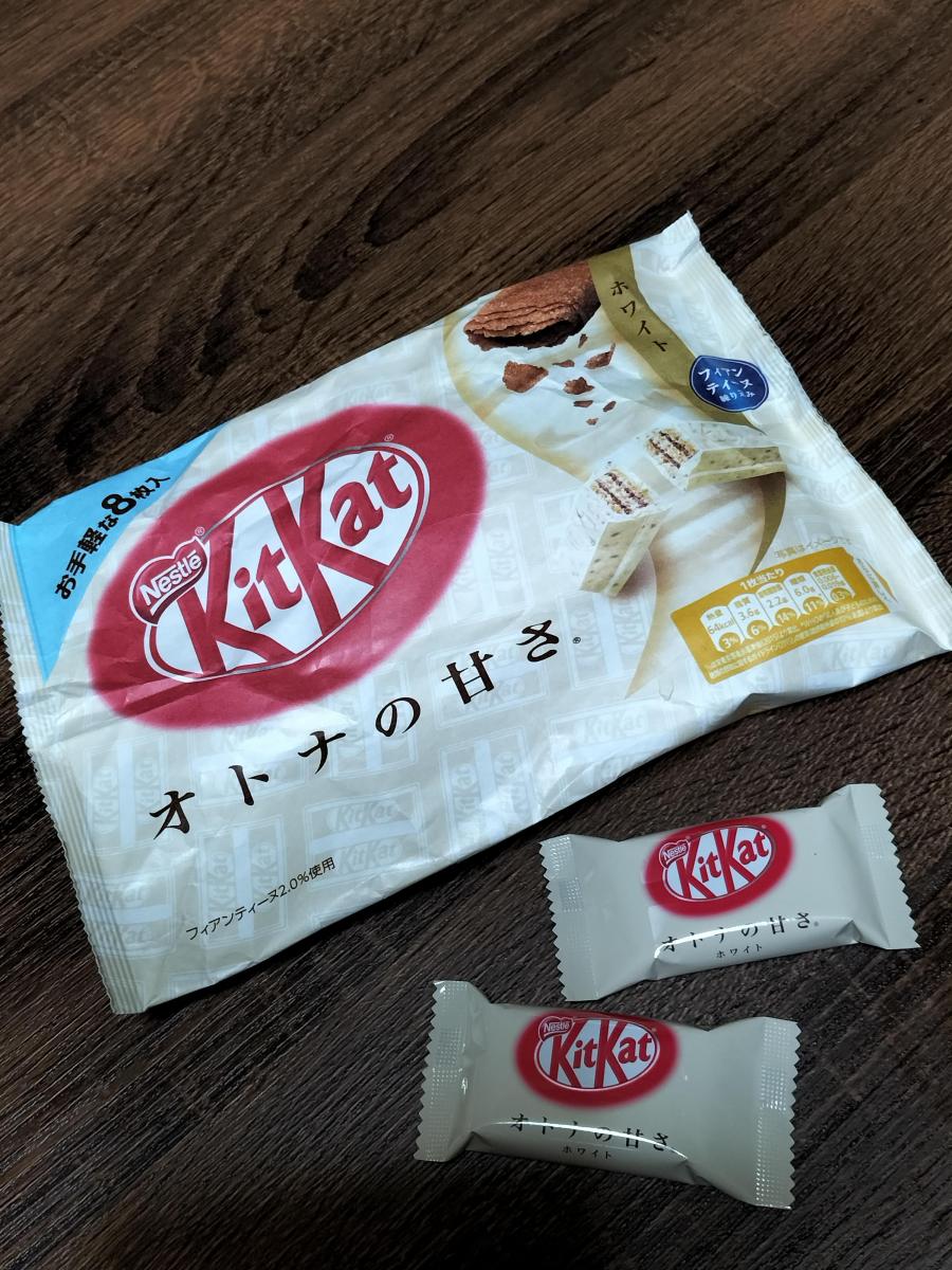 ホワイトチョコのキットカットなので、大人といっても結構甘いだろうと思っていましたが、そこまで甘すぎず程よい甘みで、舌触りもよく美味しいです。