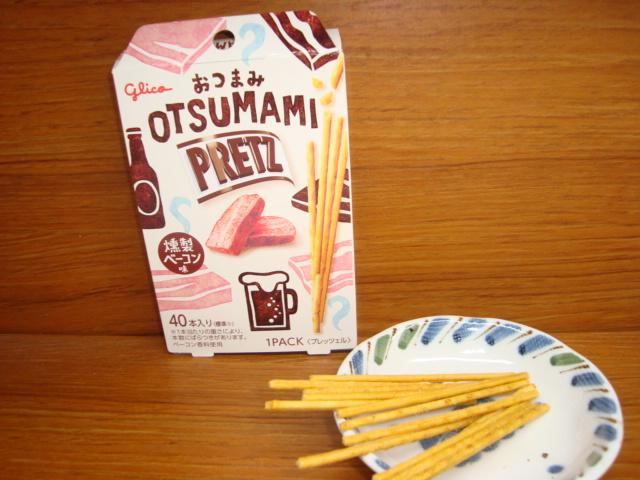おつまみ用を狙ったプリッツで、燻製ベーコン味というのはマッチしたフレーバーだなと思う。食べてみても燻製ベーコン味というところが納得できる味で、燻製らしく香りや風味がとても良くて、スモークされたベーコンをじっくりローストした絵柄が浮かんでくるよう。それと、これはおつまみ用に普通のプリッツに比べて細めかつ短くできていて、私もそうしたのだが、これを片手に缶チューハイをというようなシーンでも、横着をしてパッケージを傾けながらそのまま口の中に放りこむというような食べ方もOK。そのあたりもよく考えられてるなと思うわけで、まさに「おつまみ」プリッツだと思う。