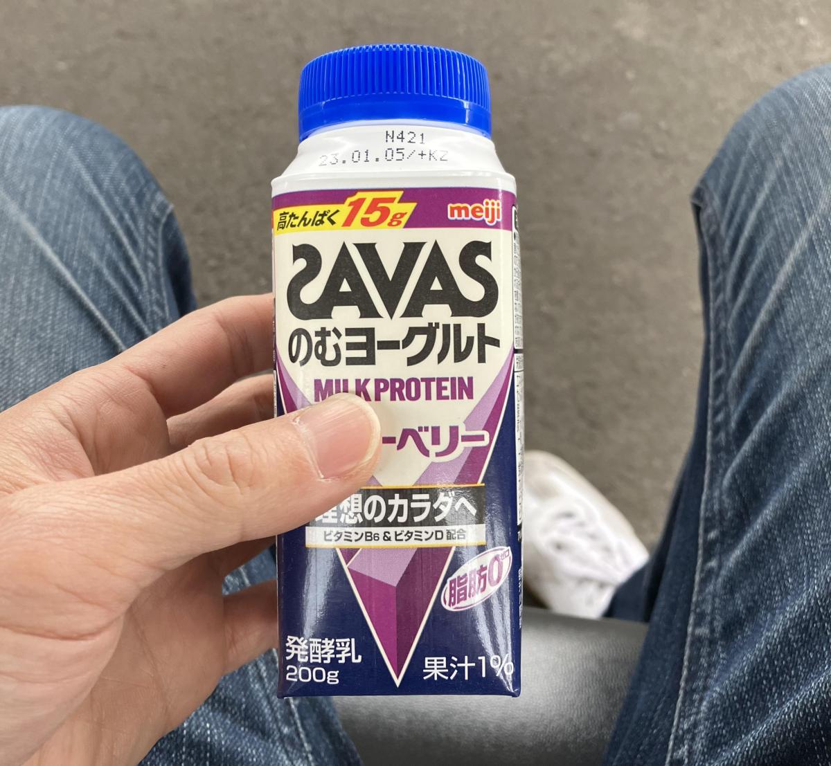 ザバスのミルクプロテインブルーベリー味。一本にタンパク質15グラムとカルシウムが含まれています。私はよく走った後に飲んでいるんですが、喉が乾いた際の止渇にもなりますし、タンパク質も摂取できるのでとても重宝しています。
