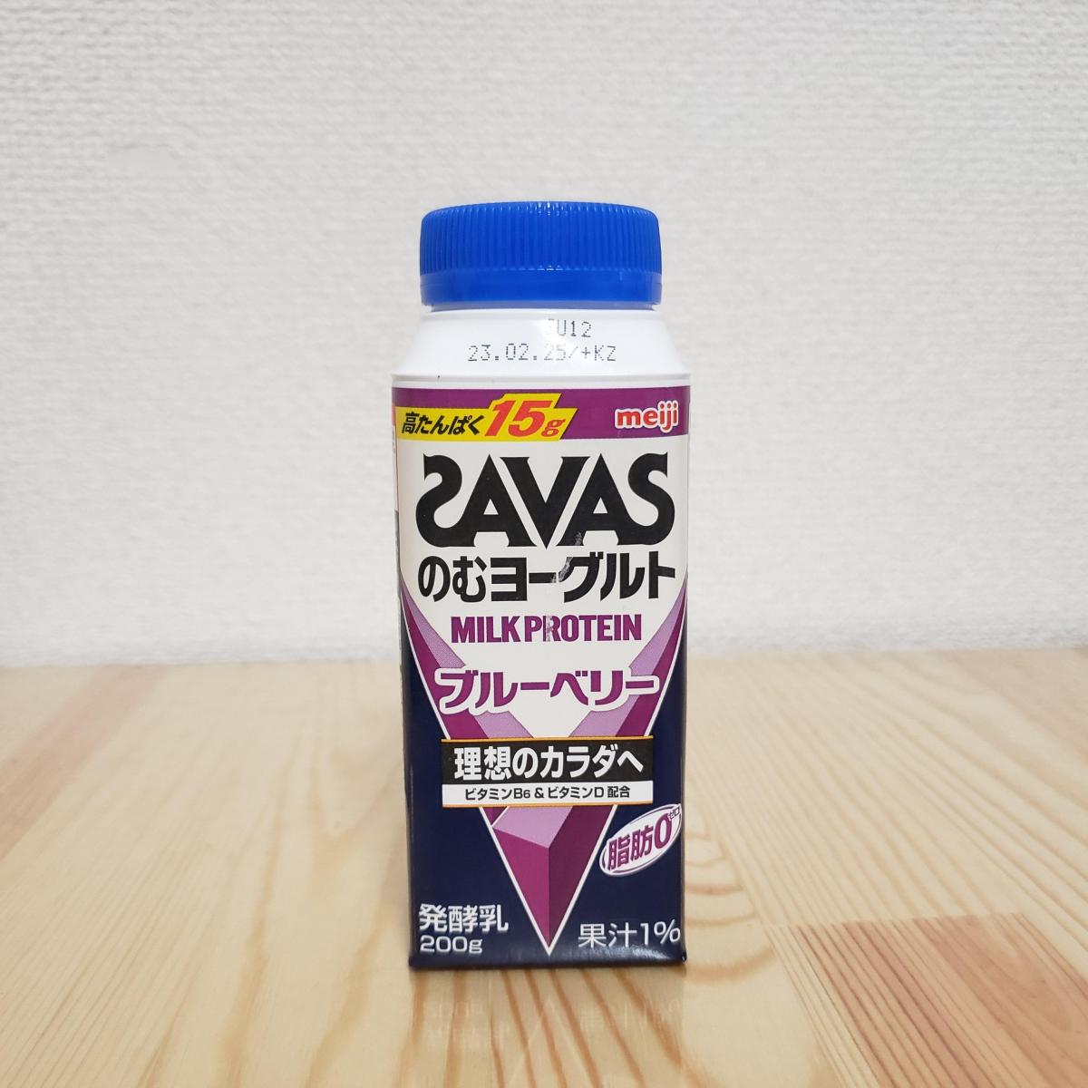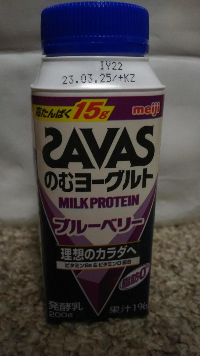 ザバスののむヨーグルトブルーベリー味です。ブルーベリーヨーグルトとして美味しくいただけます。ややクセもありますがそれほど気にならないです。意外と甘味が強いなと思いました。これひとつでタンパク質15グラム摂れるのは嬉しいですね。しかもビタミンBやビタミンDも入っていて脂肪分ゼロ。手軽に美味しく飲めて健康的。素敵なドリンクだと思います。これからもスポーツの後やタンパク質不足が気になったタイミングで飲みたいなと思います。