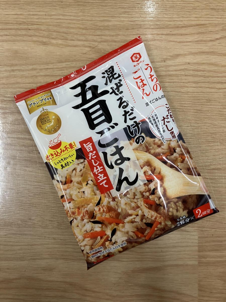 炊き上がったご飯に混ぜるだけで、五目ごはんができます。人参やひじき、油揚げなどの具材入りです。お醤油のキッコーマンだけあって、醤油の味もおいしい!出汁にもこだわっているようでかつおとこんぶの出汁もしっかりときいています。