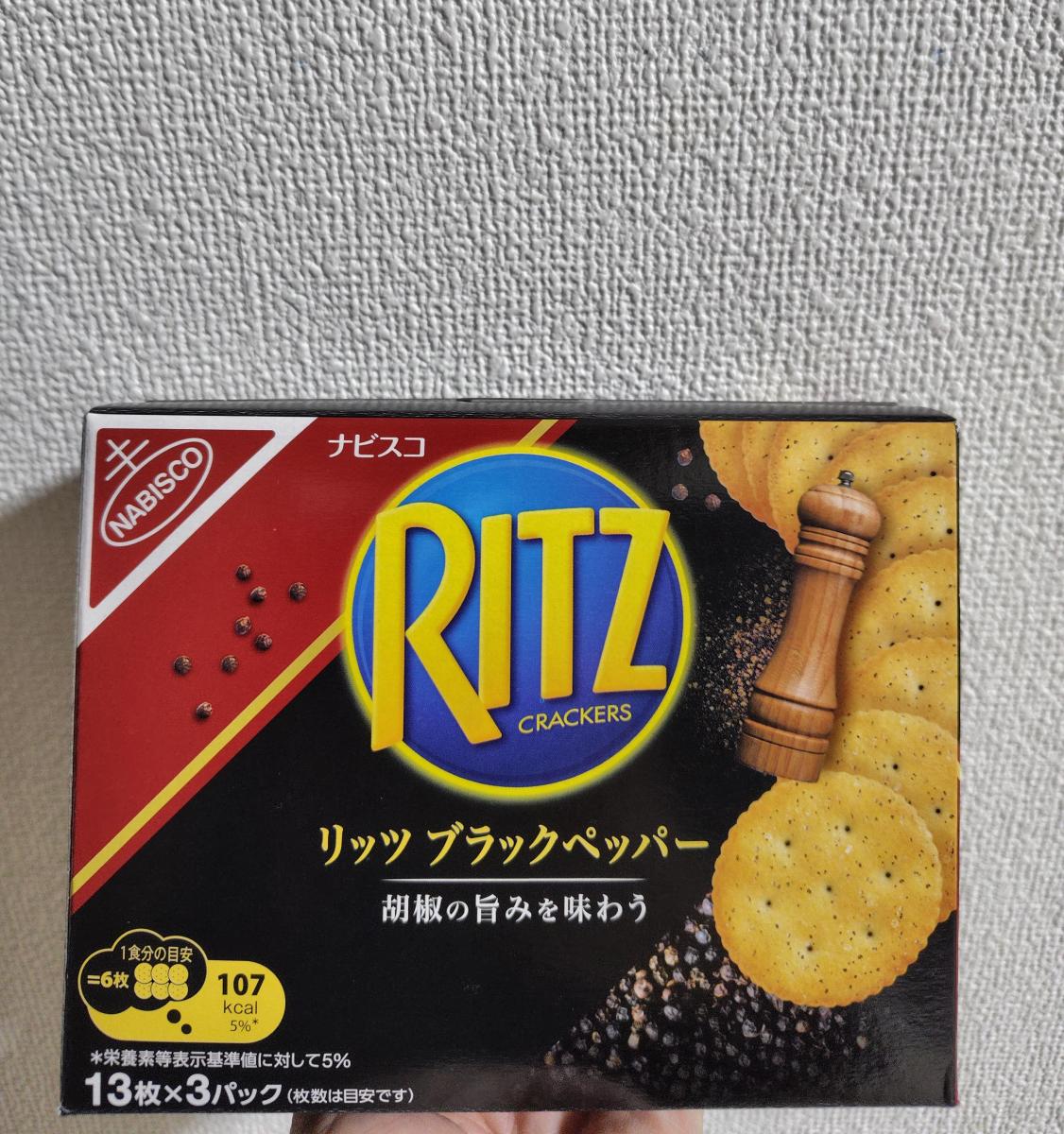 リッツ ブラックペッパー クラッカーが気になり購入してみました。1パックの量が多くて小分けされている方がよかったかな。ノーマルリッツとは違いピリッとブラックペッパーとオニオンの味わいがします サクサク軽い食感が美味しくてやみつきになります。チーズをはさんで食べるとさらに美味しくなりました。また購入してみたいなと思いました。