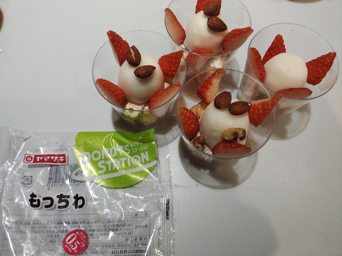 今までも何度か購入したことがあり、ドーナツ大好きな娘が迷わず選び購入しました。コスパがよく、もちもち感もよく癖になる食感です。今回は子供と一緒に大好きを詰めたオリジナルパフェを作ることになり、そのパフェに投入!普通はスポンジやカステラを入れるのでどうかな?と思いましたが、もちもち食感が活きていてとてもマッチしました。写真ではパフェの下の方に入れたため見えませんが、お手軽にもちもち食感のドーナツを食べたい方におすすめです!