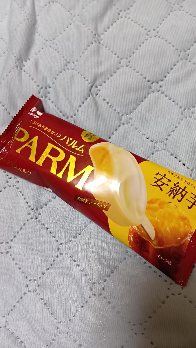 アイスの中に安納芋ペーストが入っていてかなりお芋感がある、秋にぴったりのアイスクリームです。スイートポテトを食べているような濃厚な美味しさを感じられます。PARMは色々なフレーバーが出ますが、個人的には1,2位を争うくらい美味しくて大好きなフレーバーです。