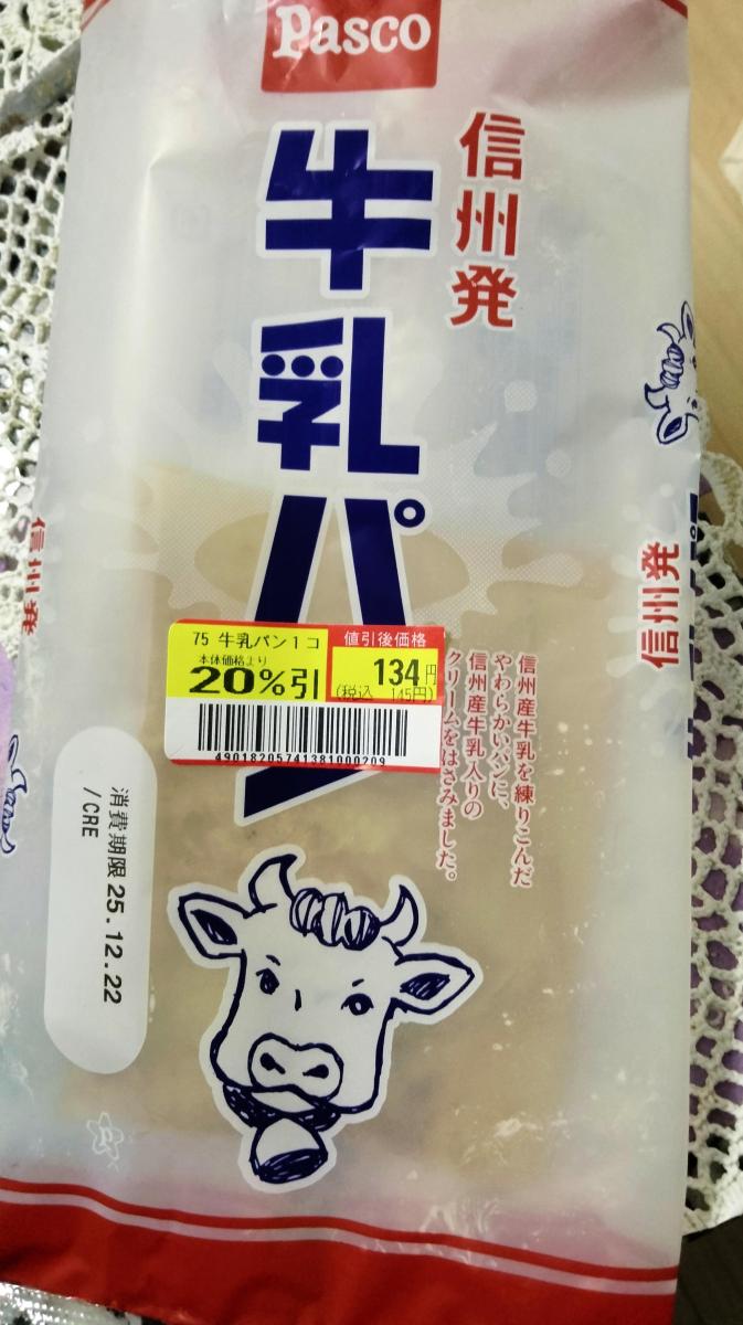 パンがふわふわでクリームは薄く塗られているけれど、丁度いい量で大好きです。牛のイラストも可愛くてついカゴに入れてしまうパン。信州牛乳と聞くと美味しそうに感じるのが不思議。