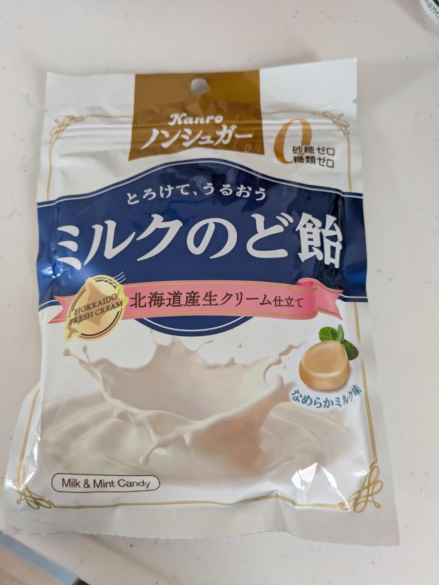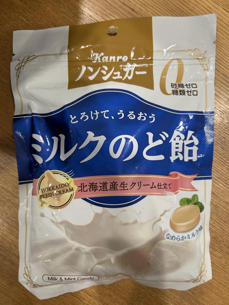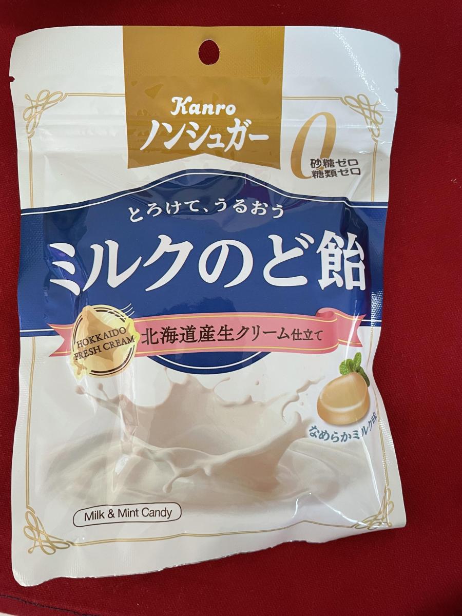 ミルク味ののど飴ということで買ってみました。ノンシュガーなのがうれしいです。食べてみたら、のどにやさしく潤っておいしかったです。