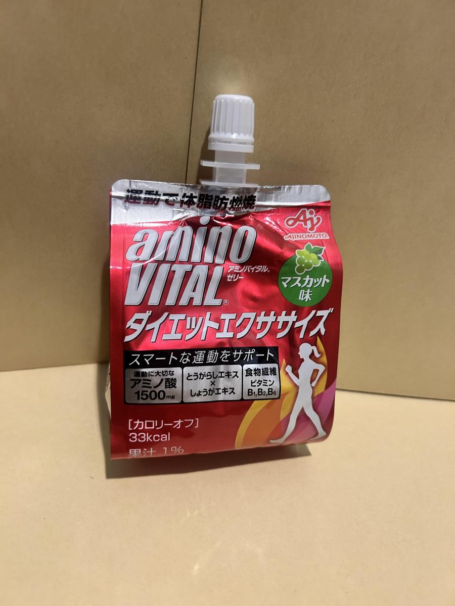 運動前の栄養補給に良さそうなものを探していて、アミノバイタル ダイエットエクササイズを見かけて購入。脂肪燃焼効果などにも期待しつつ飲んでいます。効果はまだ分かりませんが、マスカット味で飲みやすく、運動前にもぴったりなゼリー飲料です。続けやすそうな一本です。
