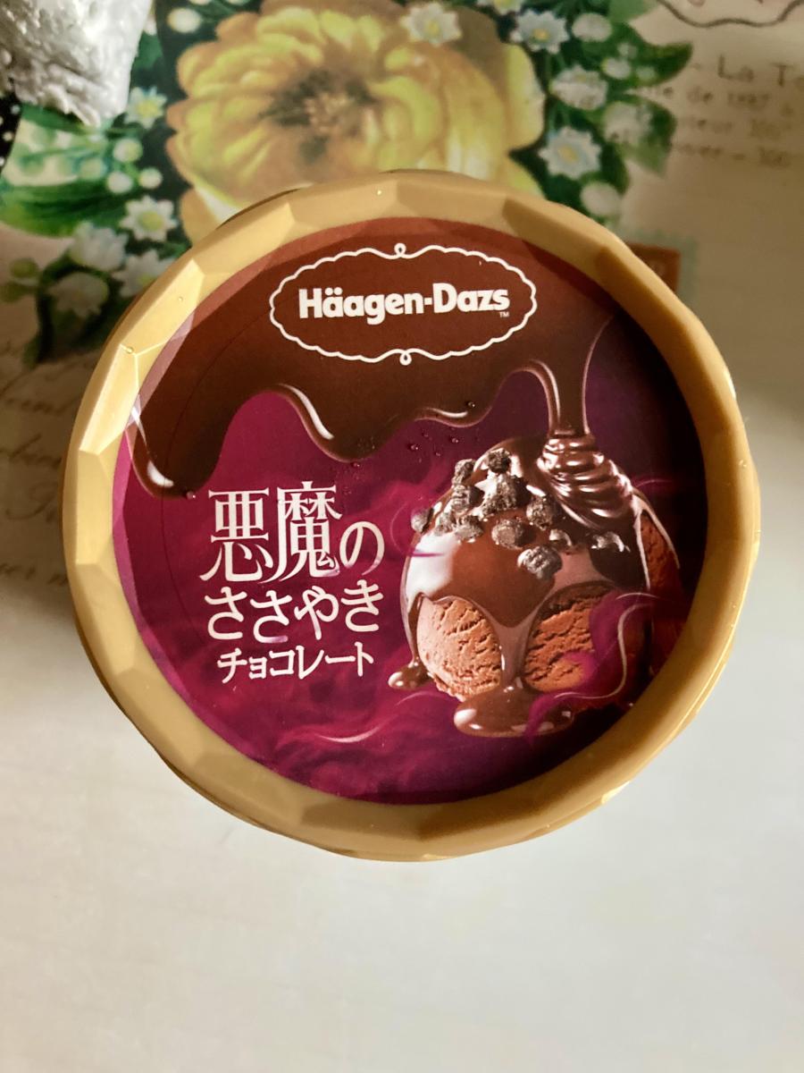 濃厚チョコレートアイスの上にチョコクッキーがいっぱい。チョコ好きには堪らない濃厚でチョコをたっぷり味わえる満足度の高いアイスです。はじめの一口から最後の一口まで食べてる間幸せ時間です。まさに悪魔のささやきです!販売されてる間にたくさんリピートしたいです。