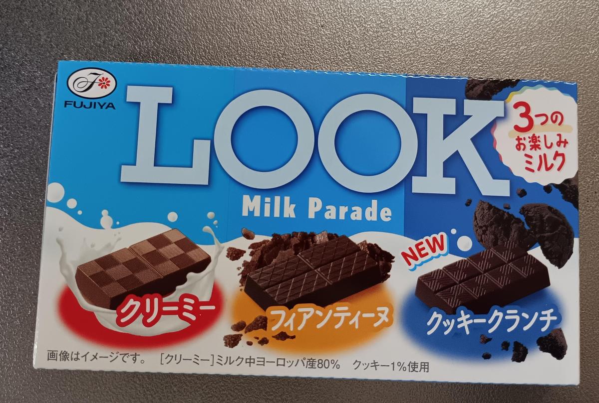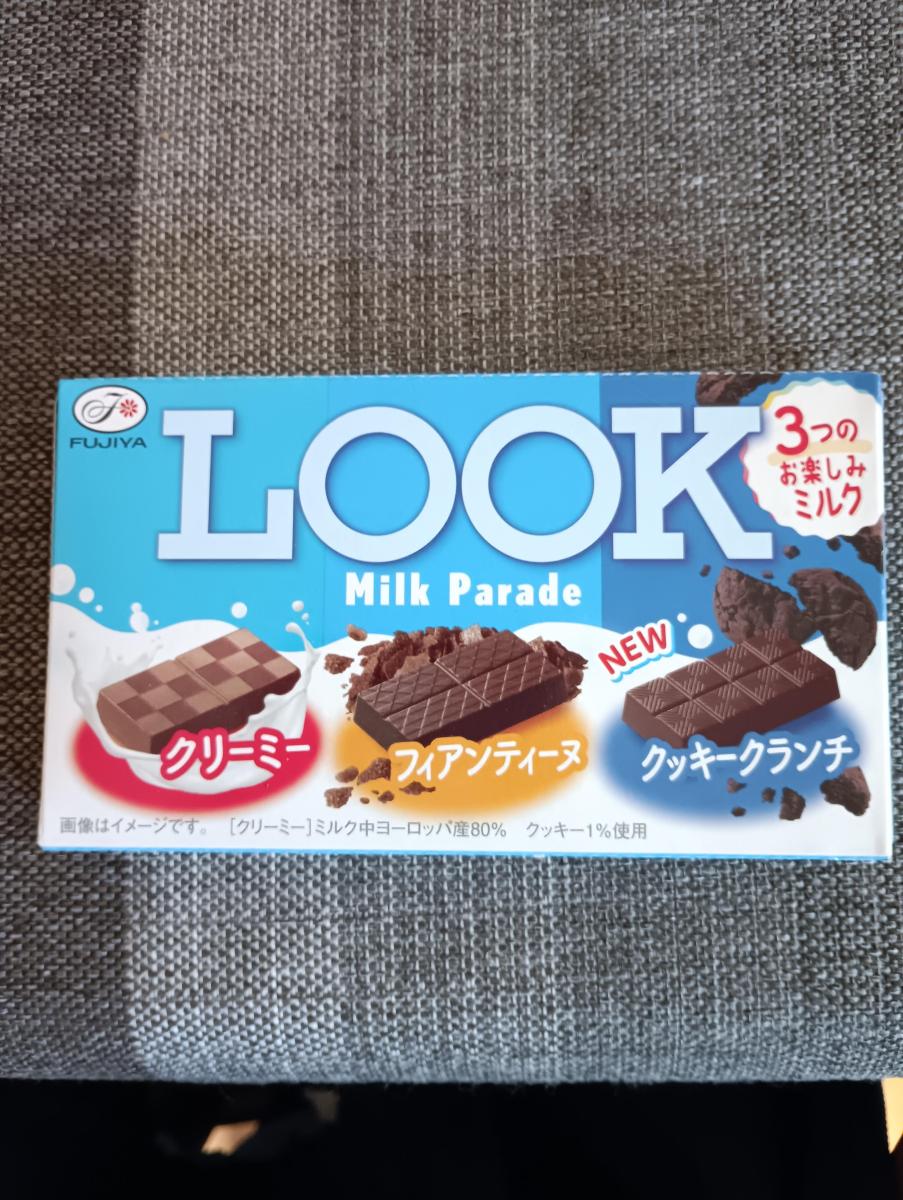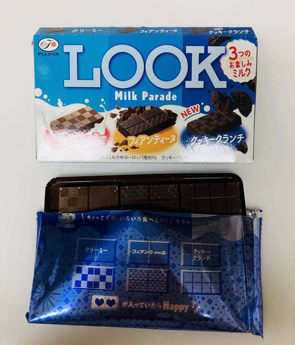 ルックのミルクパレードです。クリーミー、フィアンティーヌ、クッキークランチの3種類入っています。クリーミーはコク深い味わい、フィアンティーヌはまろやかな甘みでサクサクした食感、クッキークランチはほんのりビターでクランチのザクザク食感が楽しみます。どれも美味しく満足です。