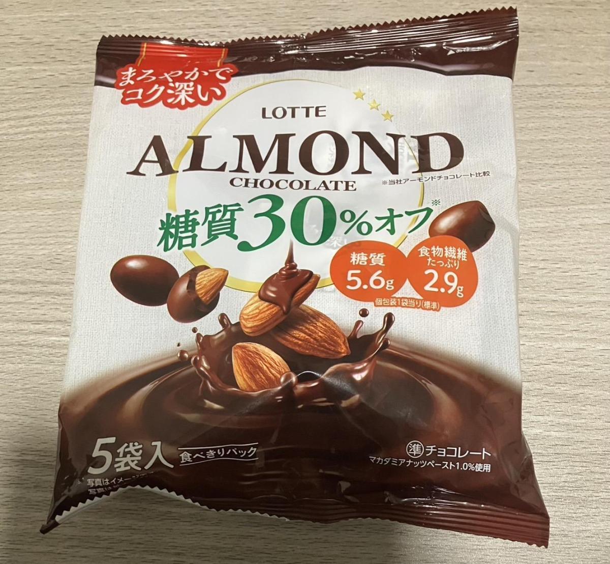 糖質30%オフとは思えないくらい甘さしっかりのアーモンドチョコレートでした。知らずに食べたら気づかないかも。中身のアーモンドもとても香ばしくて美味。ブラックコーヒーとも相性がよかったです。