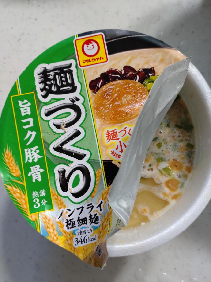 麺づくり旨コク豚骨味食べてみました。お湯を入れて3分ですが硬麺が好きなので早めに食べましたが、蓋を開けたら豚骨の良い香り、スープは濃厚クリーミーニンニクも効いていて凄く美味しい。麺づくりのよいところは、麺がしっかりしていてのびにくい事、豚骨ラーメンにピッタリです。お湯少なめがしっかり旨味濃厚さが味わえます。安いしおすすめです。