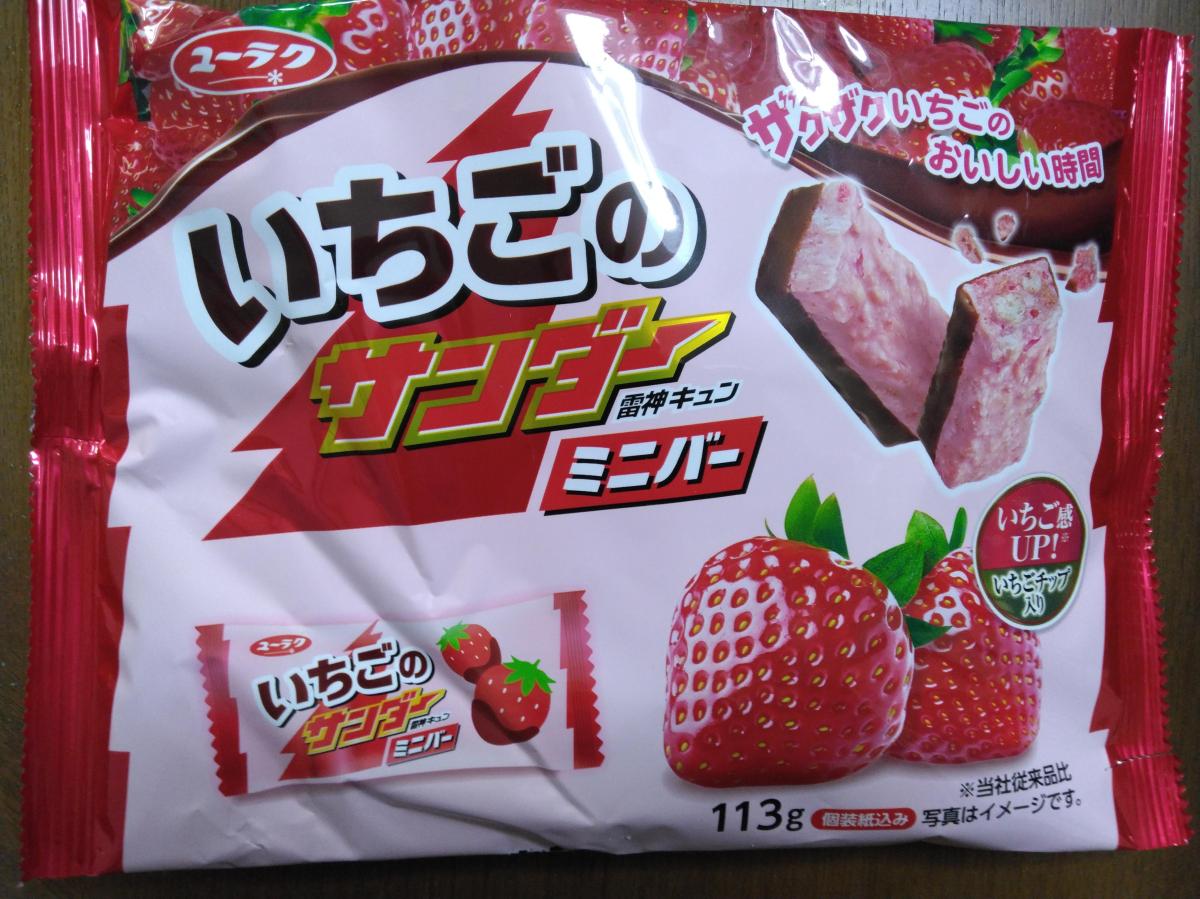 ピンク色のかわいらしいパッケージのいちごのサンダーです。