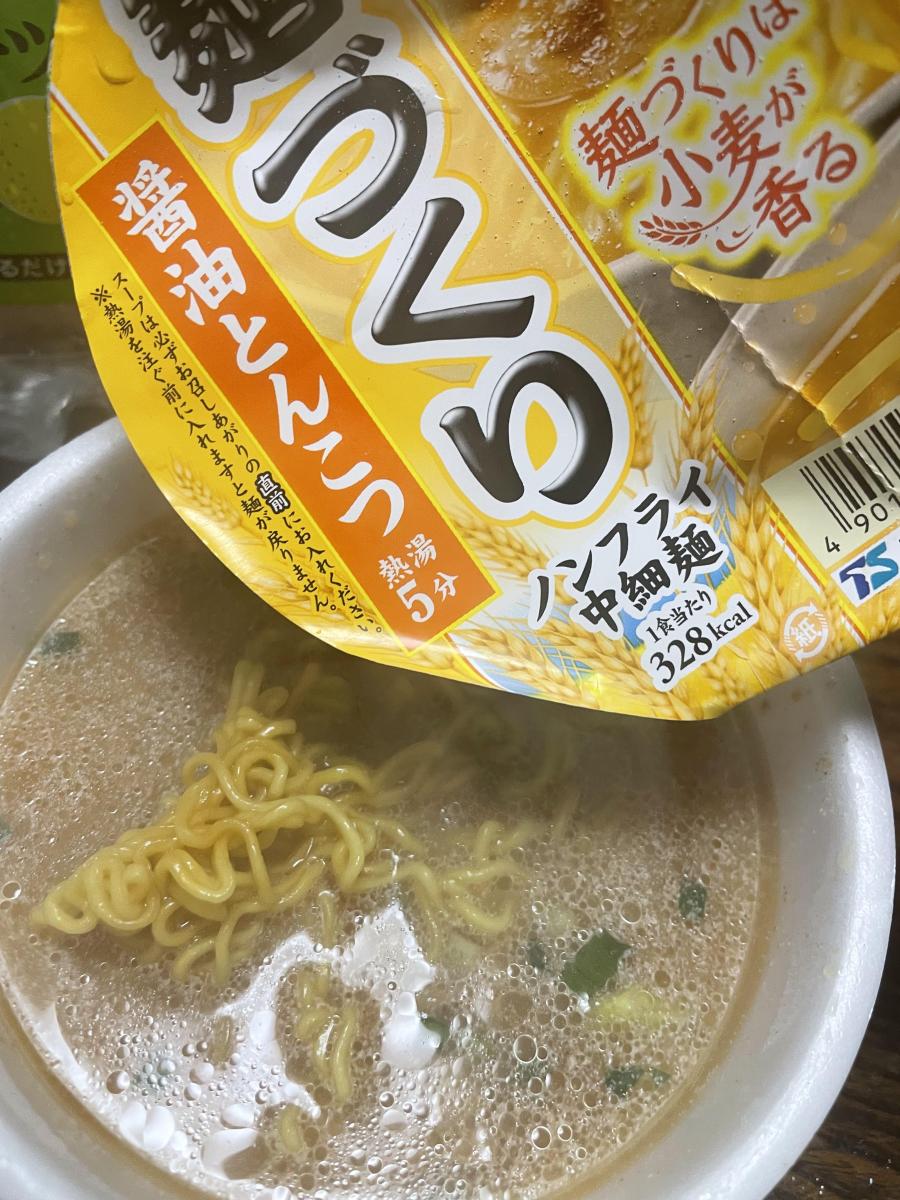 麺づくりの麺はノンフライの中細麺でコシがあって気に入っています。醤油ベースのとんこつ味は濃すぎずくどくないので食べやすくスープが麺に程よく絡んで美味しいです。小さいながらもチャーシューが入っているのも嬉しいです。