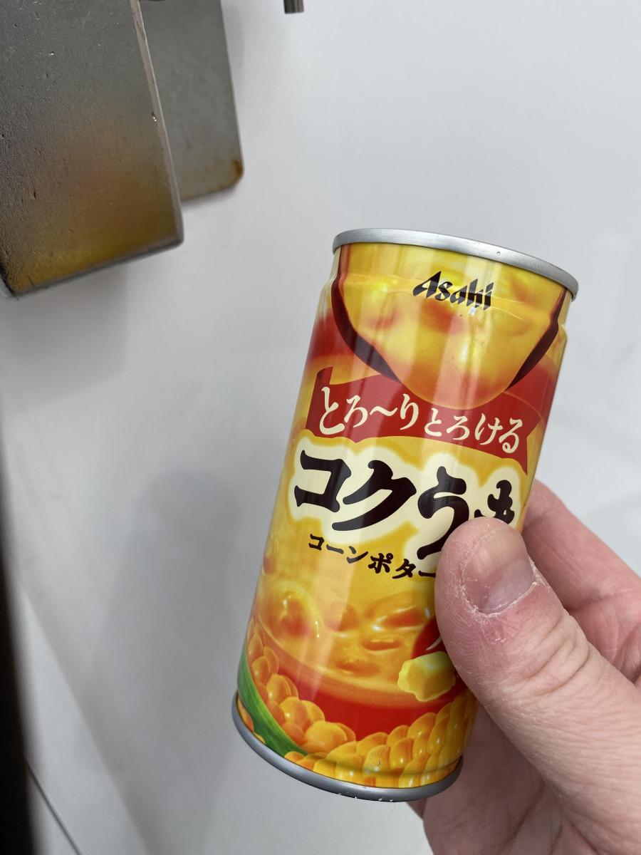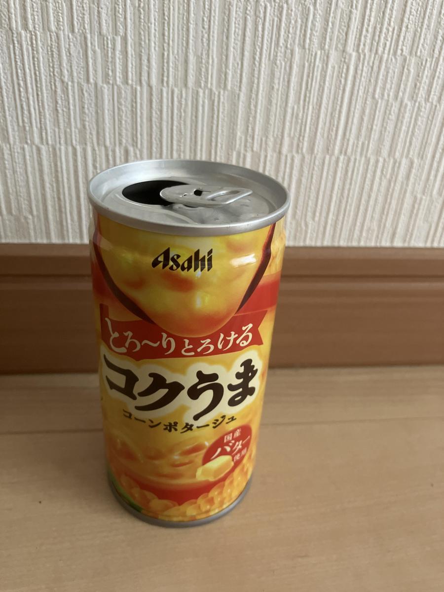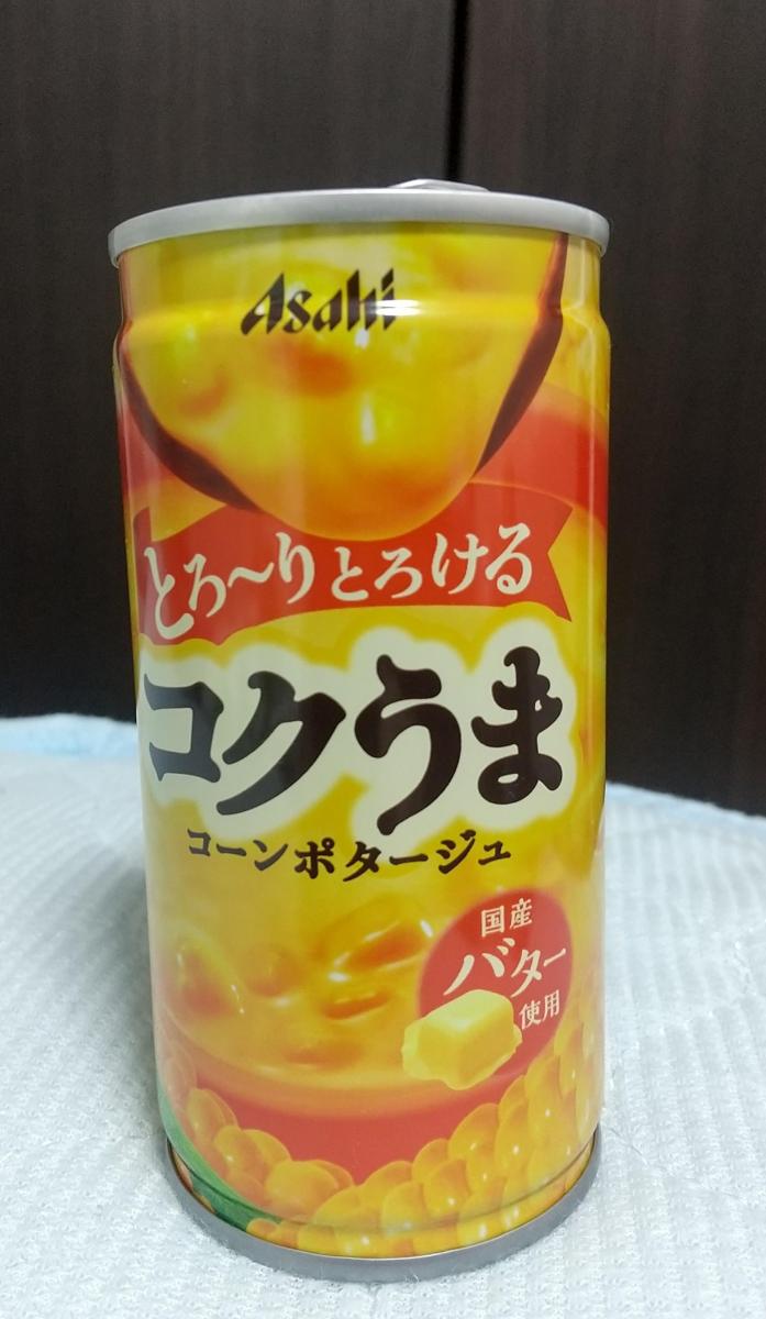 アサヒの自販機でコーンポタージュを買ってみました。商品名どうりで濃厚なコクがあります。とうもろこしの粒もたくさん入っていて、飲みごたえがしっかりあり満足の一本です。