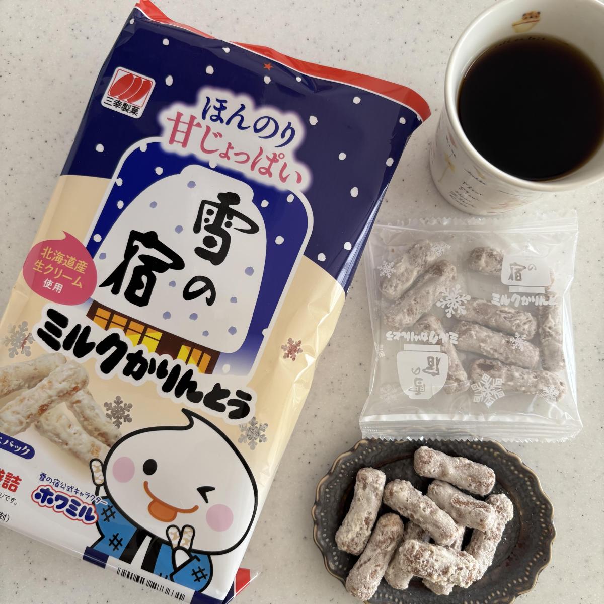 雪の宿のかりんとうシリーズになります。おせんべいのノーマルのは何度も食べた事があるけど、ミルクかりんとうは初めてです。