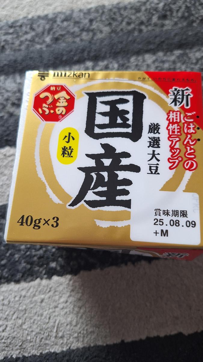 美味しい納豆金のつぶシリーズ!こちらは国産!!をすごくアピールしてくれているパッケージなので思わず購入してしまいました。大豆は小粒ですがふっくらとしていて美味しく、付属のタレもしっかりとした味がついていて良かったです。ごはんがかなり進みました。粘り気は結構あるのに、においは少ない気がして、そちらも嬉しかったです。そして国産は何となく安心感があるので、またあったらぜひリピートしたいなと思いました。