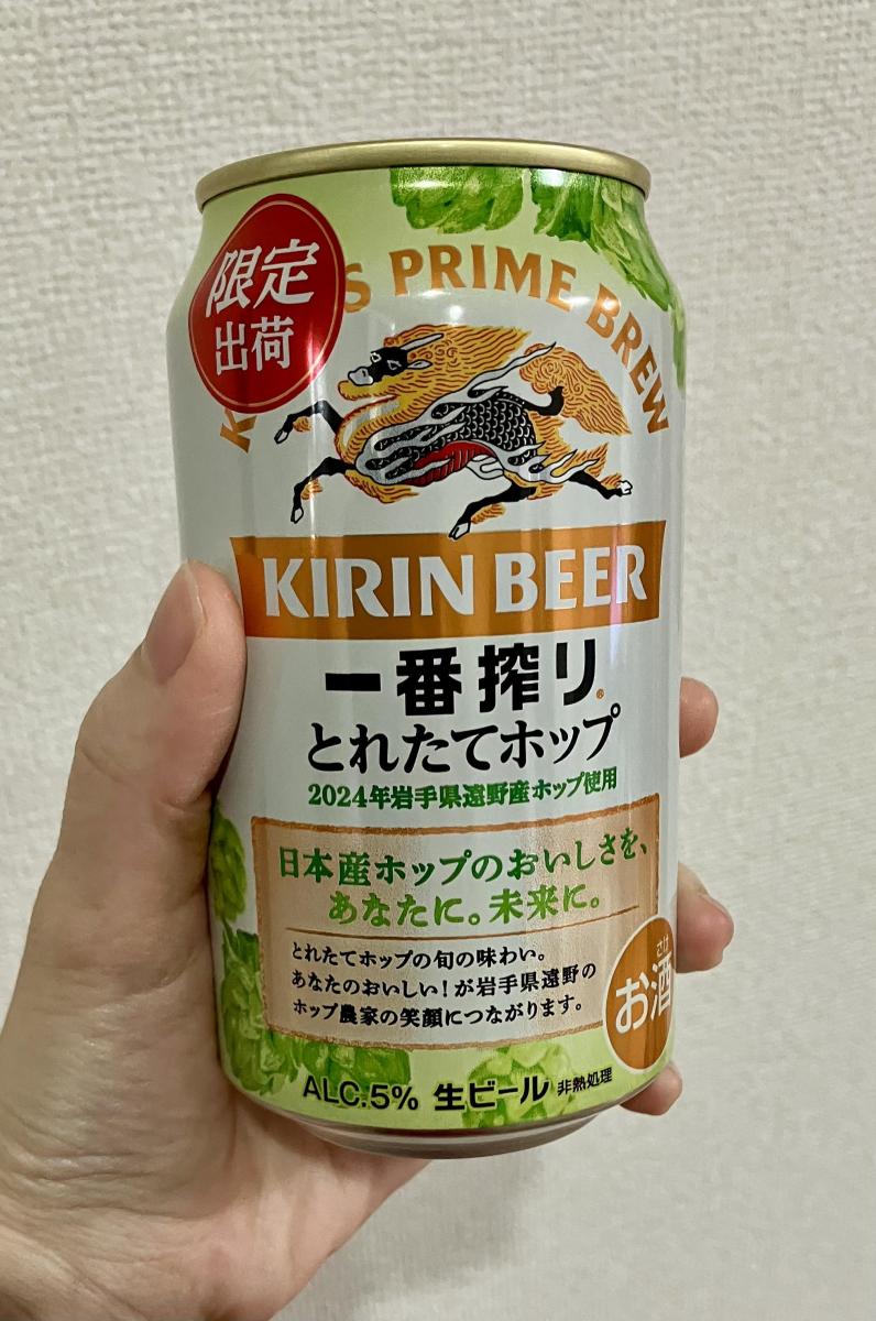 毎年楽しみにしているとれたてホップの一番搾りで通常のものより爽やかで香りが強い気がして気に入っています。のどごしが良く口の中がサッパリするのでどんな食事にも合うと思います。緑のホップのパッケージデザインも明るく爽やかで良いです。