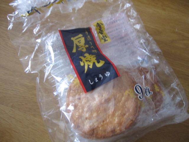 ネーミングが厚焼なのでそれに期待して食べてみたのですが、思ってた以上に厚焼きでバリッバリ食感だったので一口目びっくりしました。食べ応えがすごいです。それに一枚のサイズも大きいので、一枚でもう大満足という感じでした。醤油の味もクセがなくいい香ばしさで、最後までおいしく食べられました。